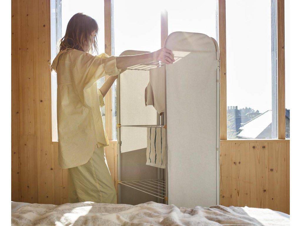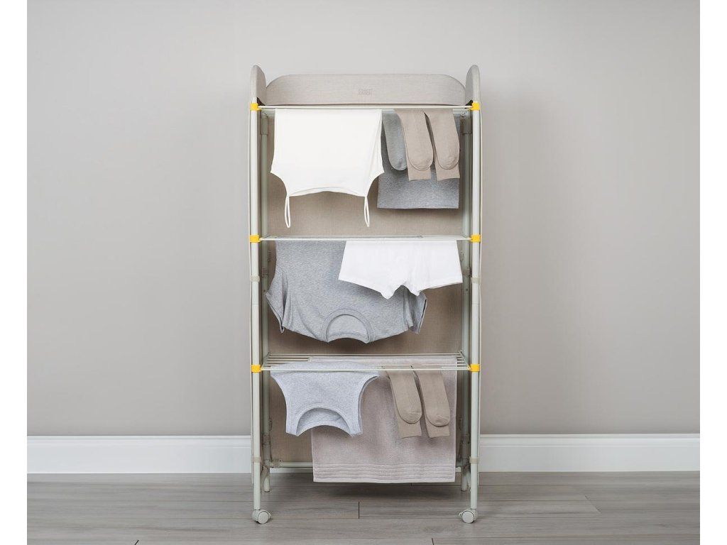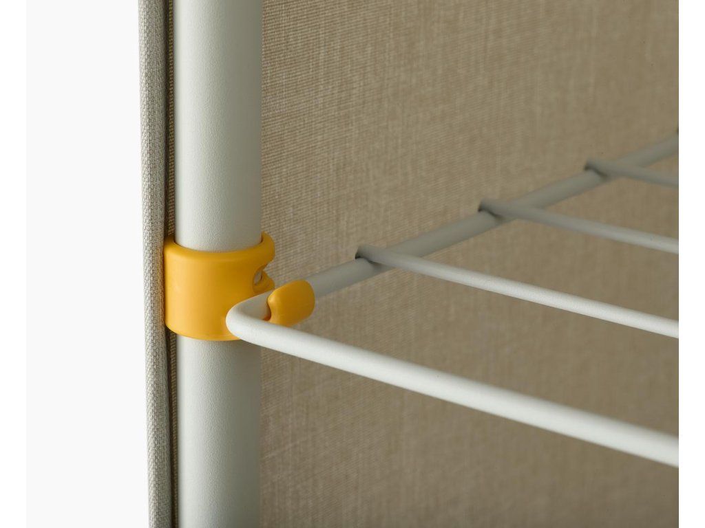 Upozornění: Pouze k použití v interiéru. Vždy používejte na rovném povrchu tak, aby byl výrobek stabilní. Před vkládáním prádla se ujistěte, že jsou kolečka a police zajištěny. Při vkládání dbejte na rovnoměrné rozložení hmotnosti / sušák nepřetěžujte. Neumisťujte sušák do blízkosti otevřeného ohně. Nedovolte dětem hrát si se sušákem a uložte jej, když se nepoužívá. Výrobek vyžaduje sestavení uživatelem. Kompletní návod k montáži je součástí balení.