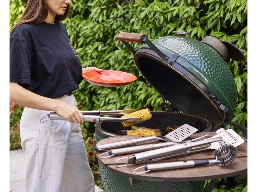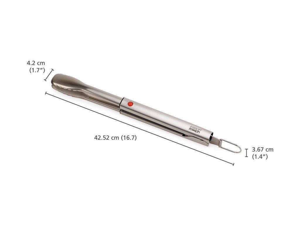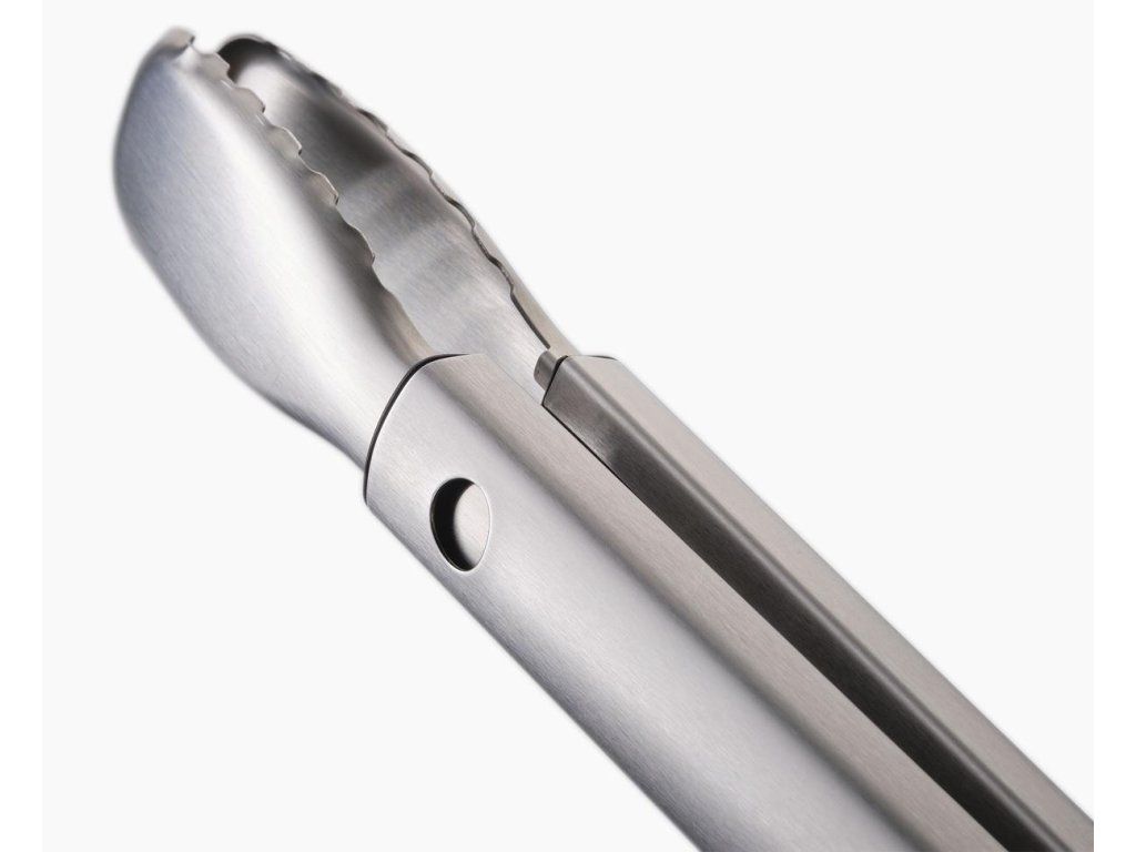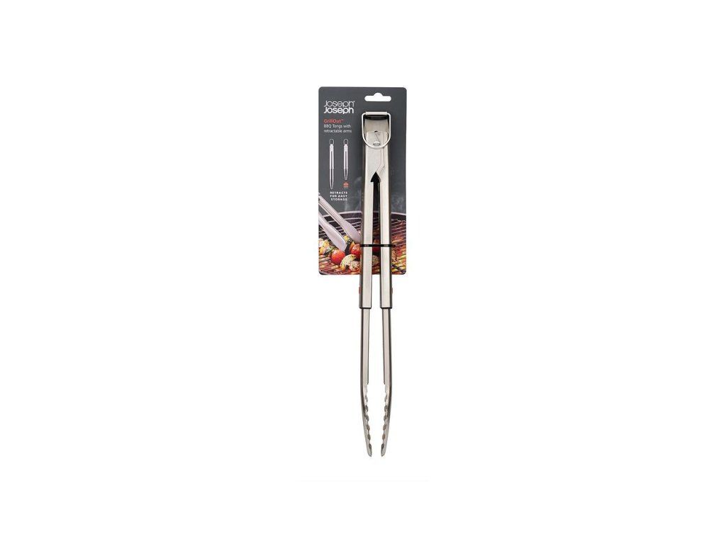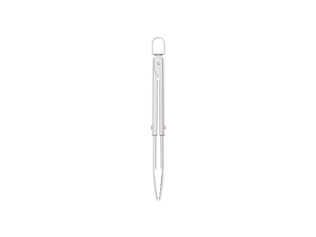 Kleště na grilování z nerezové oceli mají zuby pro přesný úchop a odnímatelnou hlavici pro snadné čištění. Pracovní části nástrojů GrillOut jsou výsuvné. V zasunuté poloze mají kompaktní velikost vhodnou pro skladování v běžných zásuvkách. Nástroje mají odolnou nerezovou konstrukci a jsou opatřeny závěsnými očky. Náčiní je možné mýt v myčce. Nenechávejte náčiní na grilu během vaření a neodkládejte jej horké na pouzdro (pouzdro není žáruvzdorné ani vhodné pro kontakt s potravinami). Pozor: Před použitím se ujistěte, že jsou hlavice náčiní zcela vysunuté. Při používání ostrých vidliček buďte opatrní.