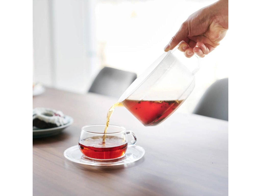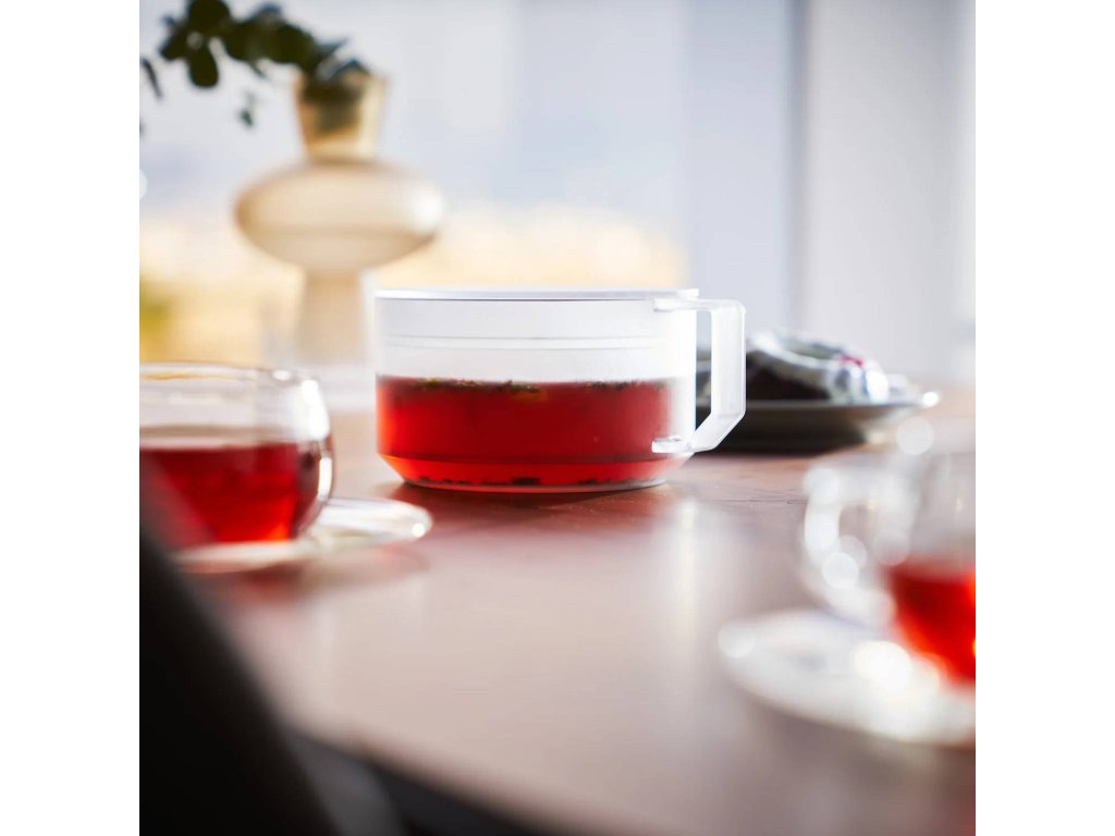 Kompaktní čajová konvice s plochým víkem a vestavěným sítkem – YAMAZAKI Tower 1672 (bílá) / 1673 (černá). Navržena pro každodenní použití. Nabízí lehkou konstrukci a víko s integrovaným sítkem. Funguje s teplými i studenými nápoji a je bezpečná pro použití v mikrovlnné troubě a myčce nádobí. Konvice je vyrobena z kopolyesterové pryskyřice – materiálu, který dobře odolává teplu nebo poškození v důsledku náhodného pádu. Konvice není určena pro přímý ohřev na sporáku - nesmí přijít do přímého kontaktu s plamenem ani horkou plotýnkou. Je určena pro nalévání horké vody (např. z rychlovarné konvice).