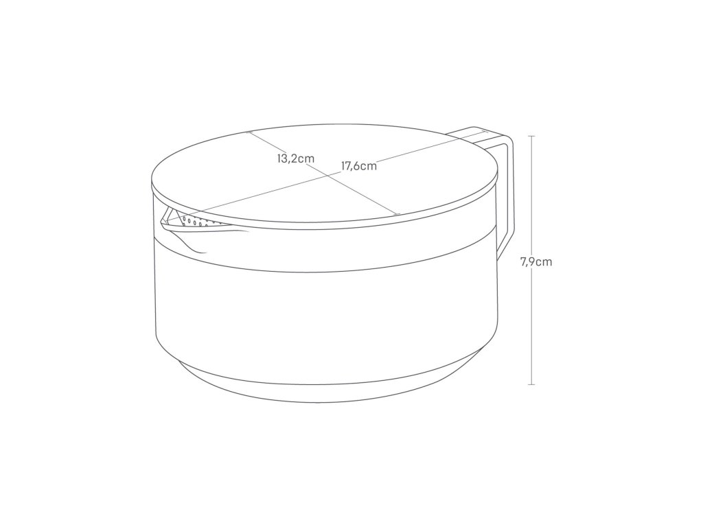 Velikost: 7,9 x 13,2 x 17,6 cm (VxŠxH) / objem 600ml / hmotnost 0,21kg.