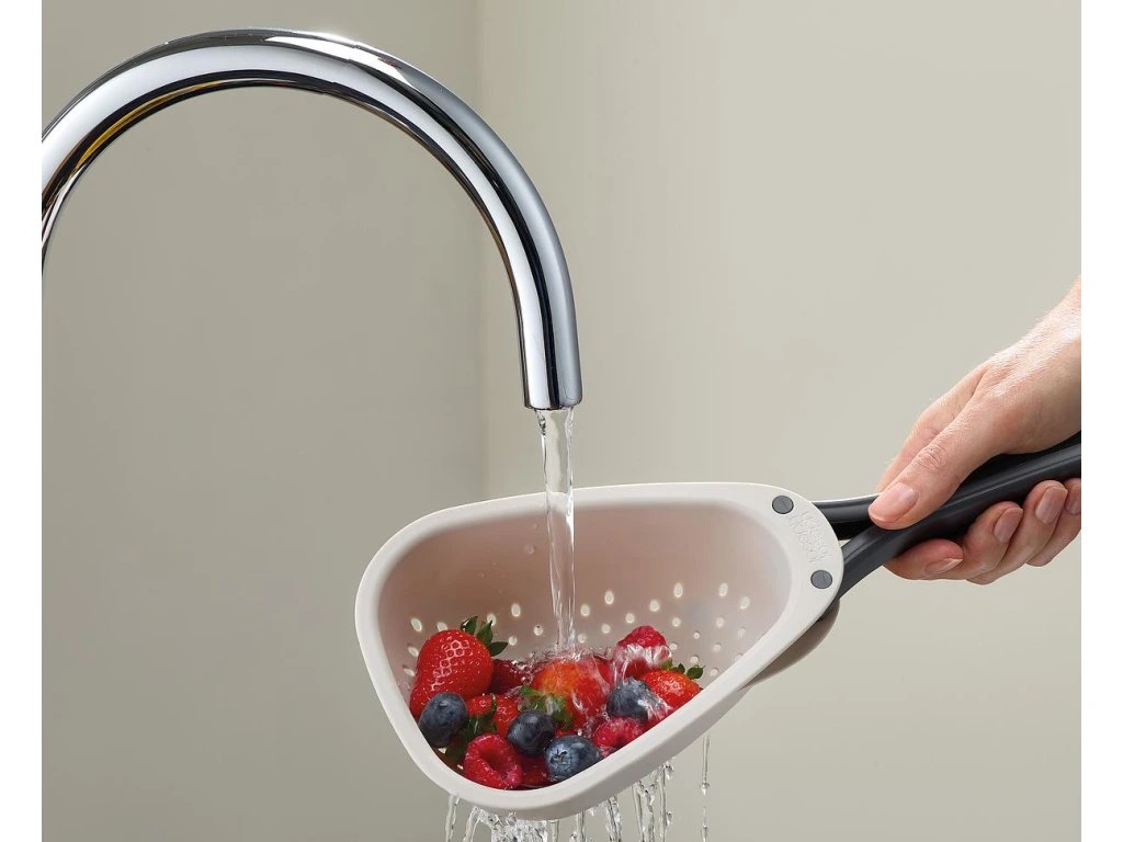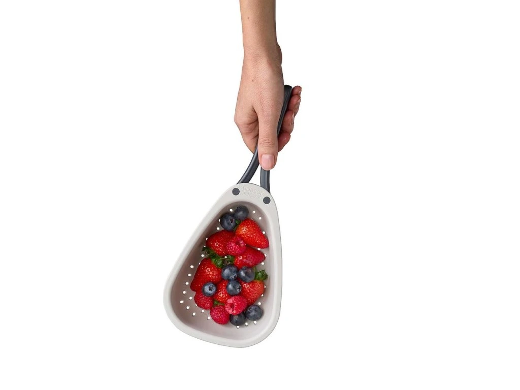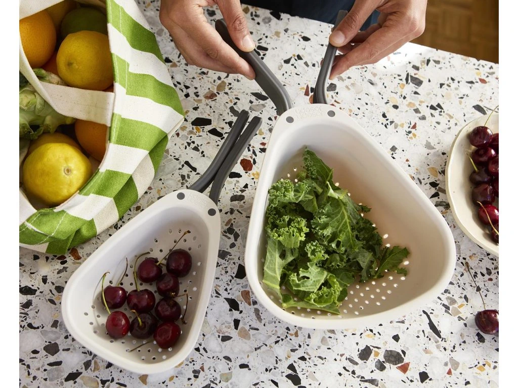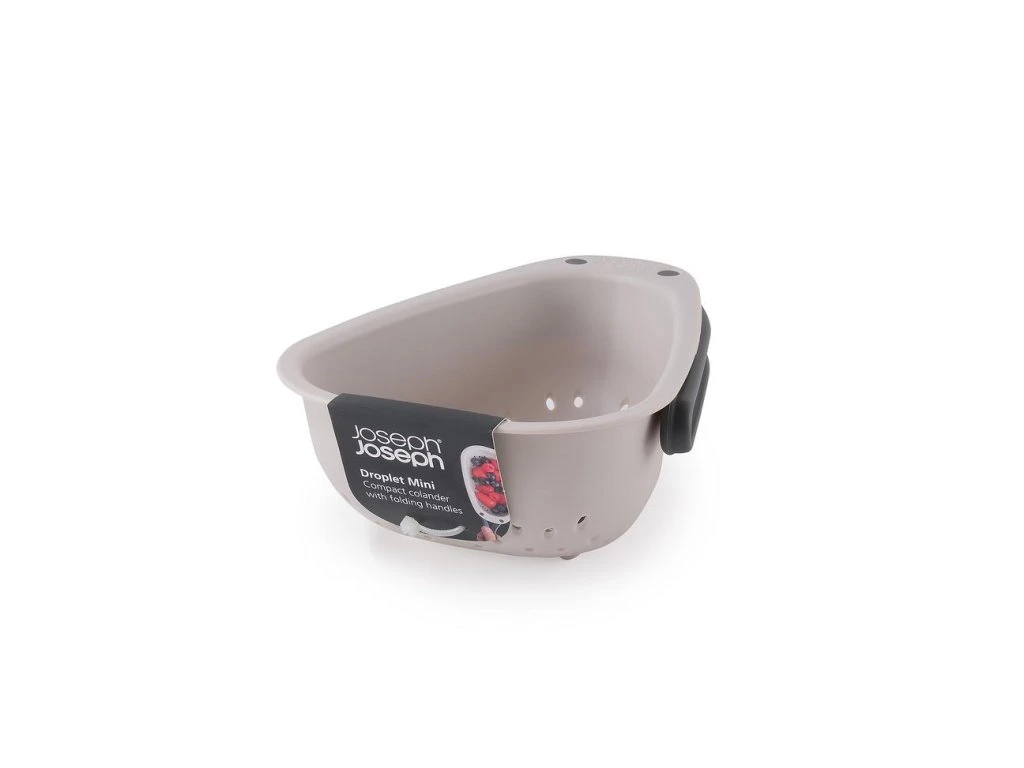 Cedník se skládací rukojetí JOSEPH JOSEPH Droplet Mini 1000018 je ideální pro oplachování a scezení menšího množství ovoce a zeleniny. Skládací rukojeti uspoří skladovací místo. Cedník má oblé rohy pro usnadnění vylévání a pevné nožičky pro větší stabilitu. Cedník je možné mýt v myčce. Cedník neumísťujte na horké pánve. Vyrobeno ze 100% polypropylenu.
