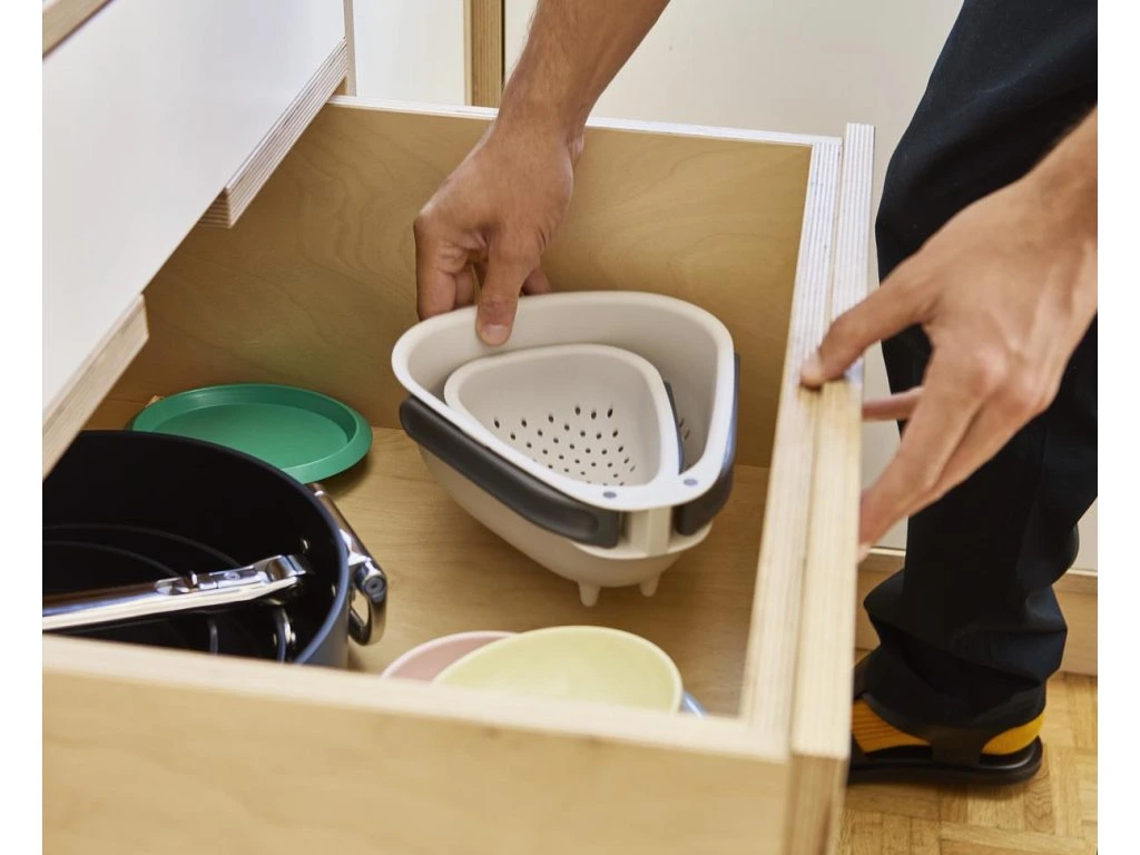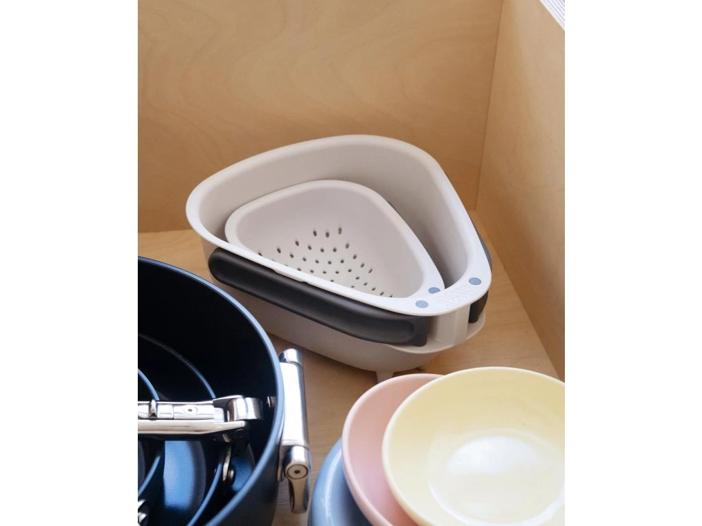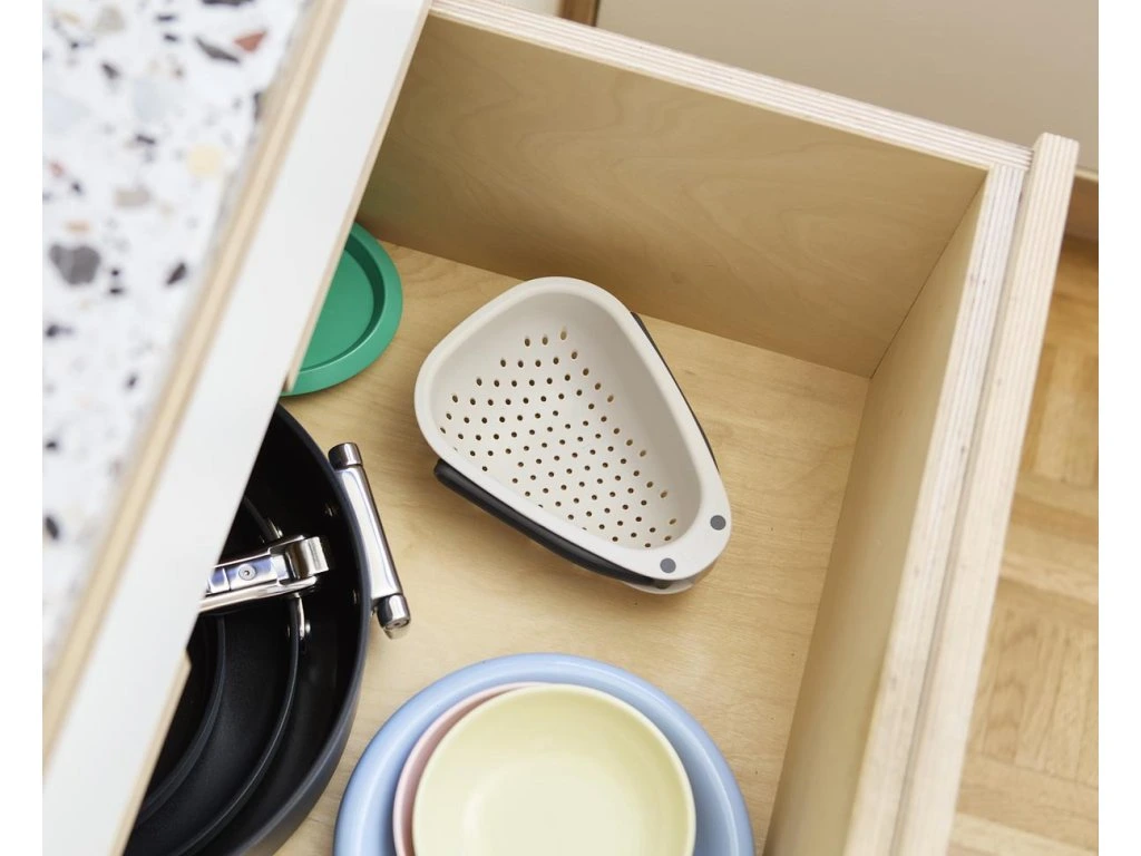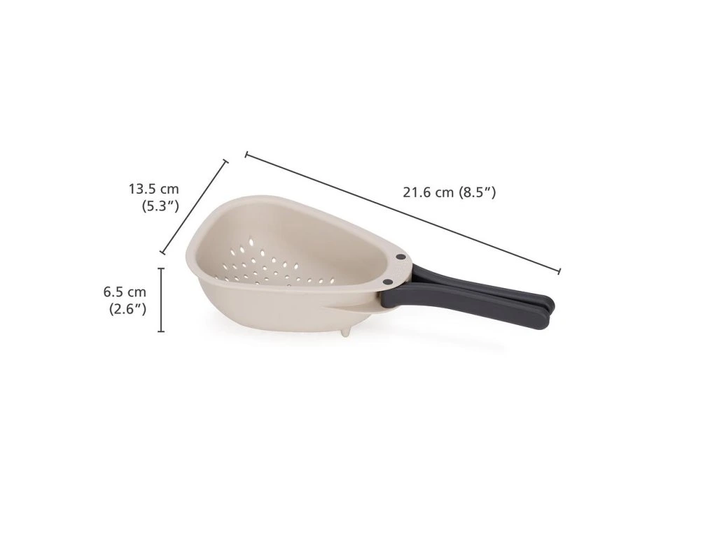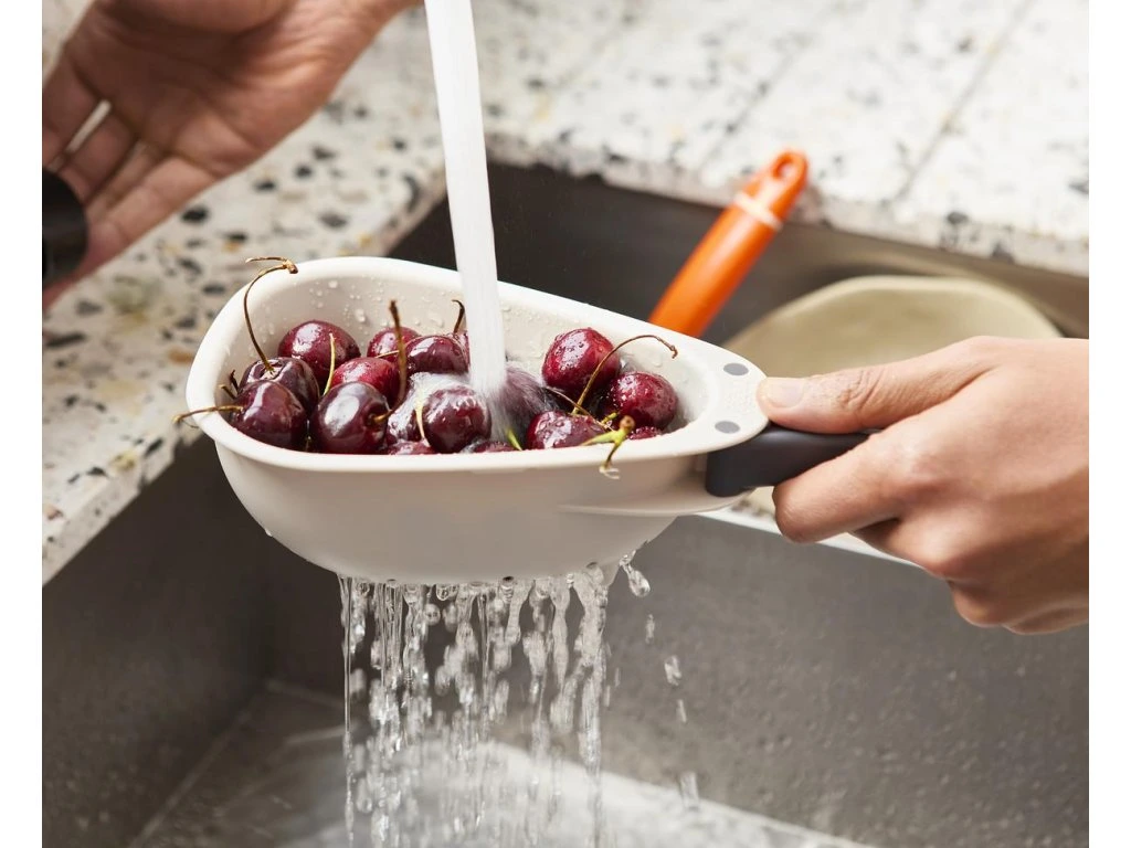 Cedník se skládací rukojetí JOSEPH JOSEPH Droplet Mini 1000018 je ideální pro oplachování a scezení menšího množství ovoce a zeleniny. Skládací rukojeti uspoří skladovací místo. Cedník má oblé rohy pro usnadnění vylévání a pevné nožičky pro větší stabilitu. Cedník je možné mýt v myčce. Cedník neumísťujte na horké pánve. Vyrobeno ze 100% polypropylenu.