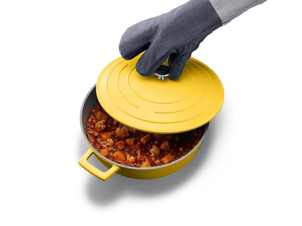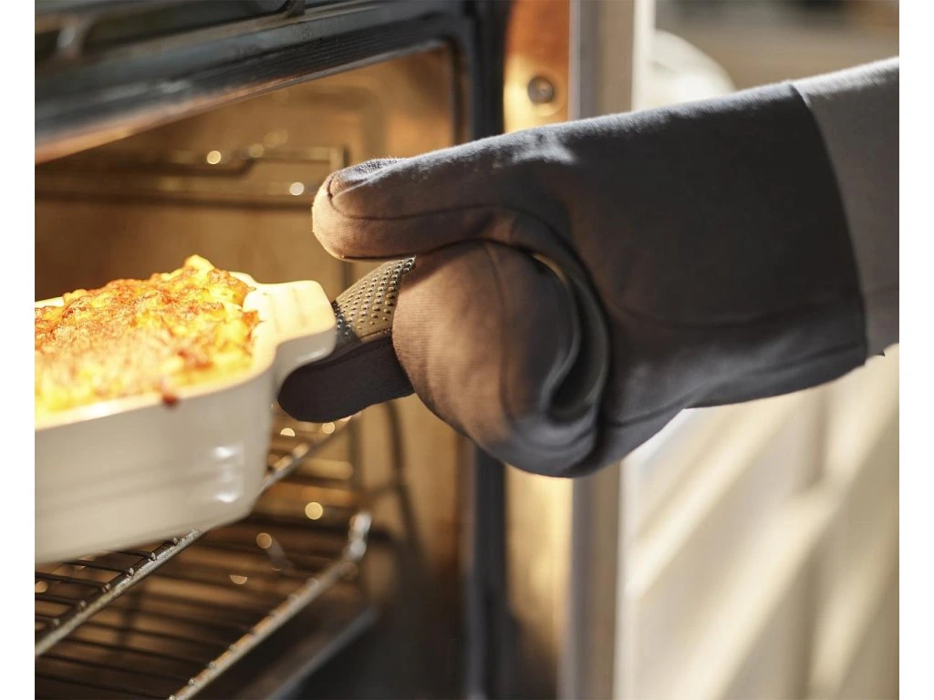 Chytře navržená chňapka JOSEPH JOSEPH Pinch nabízí díky oddělenému ukazováčku pravé ruky mnohem větší obratnost a kontrolu při manipulaci s horkým nádobím. Silikonové kontaktní plochy jsou odolné do teploty 230˚C. Chňapky mají pohodlné polstrované manžety s bavlněnou podšívkou a poutkem k zavěšení. Chňapka je určena pouze pro pravou ruku. Lze ji prát v pračce (viz. štítek na výrobku).
