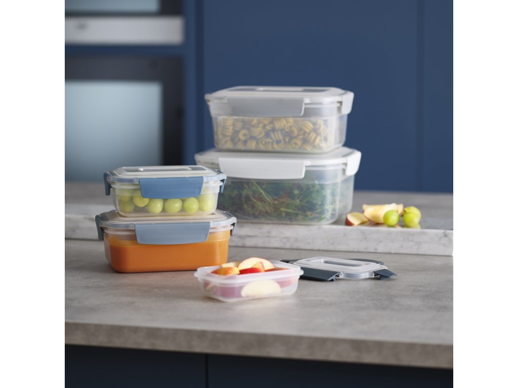 Nest™ Lock nádoby zapadají jedna do druhé. Tvarovaná víčka se zaklapávají do sebe a skladují zároveň s miskami. Každé víčko a miska příslušné velikosti jsou barevně označeny pro snadné spárování. Nádoby Nest™ Lock jsou vzduchotěsné a 100% vodotěsné. Lze je užít pro ohřev v mikrovlnné troubě i skladování potravin v lednici. Výborně poslouží i jako rodinné lunch boxy na cesty. Při užití pro ohřev v mikrovlnné troubě víčko volně položte na misku (nádobku neuzavírejte).