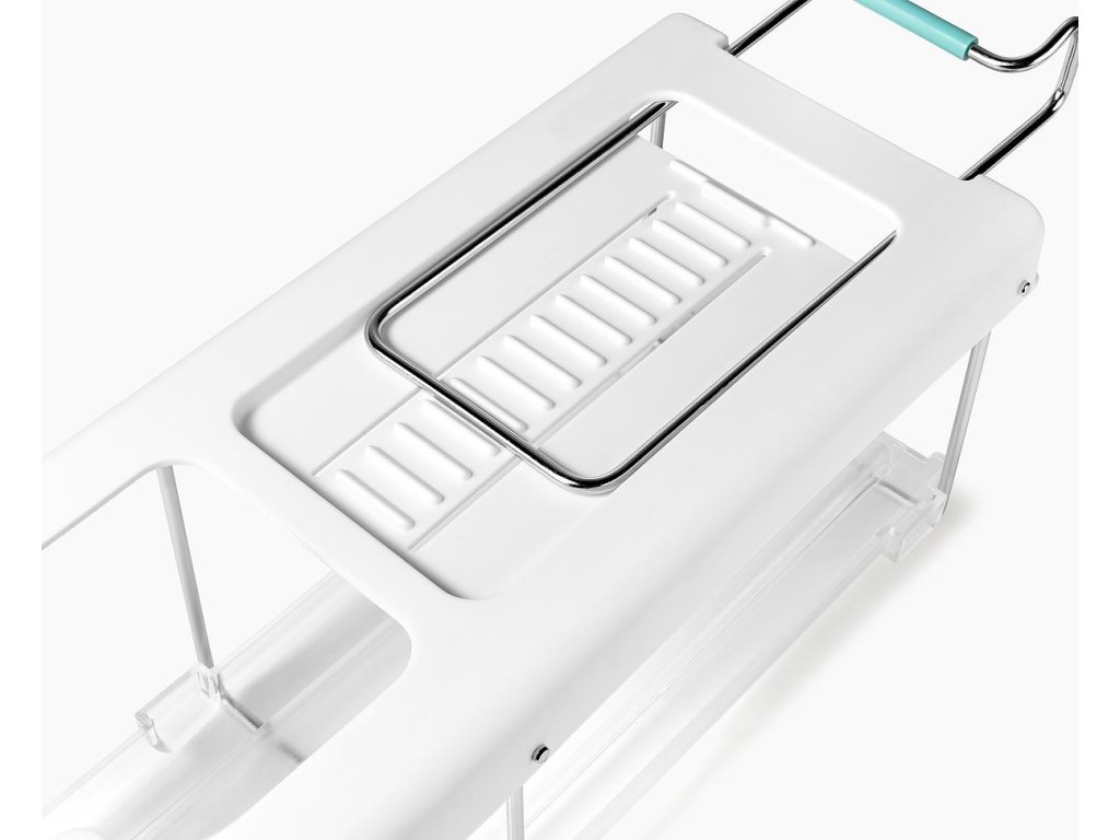 Skládací držák láhve vína/šampaňského do lednice – JOSEPH JOSEPH FridgeStore 8500005. Držák se bezpečně upevňuje k policím lednice. Láhve udržuje vodorovně stabilní a snadno přístupné. Po vyjmutí láhve lze složit do plochého tvaru. Snadná instalace a přemísťování díky předním a zadním klipům. Pro polici minimální hloubky 26 cm, maximální hloubky 38 cm a maximální tloušťky 1 cm.