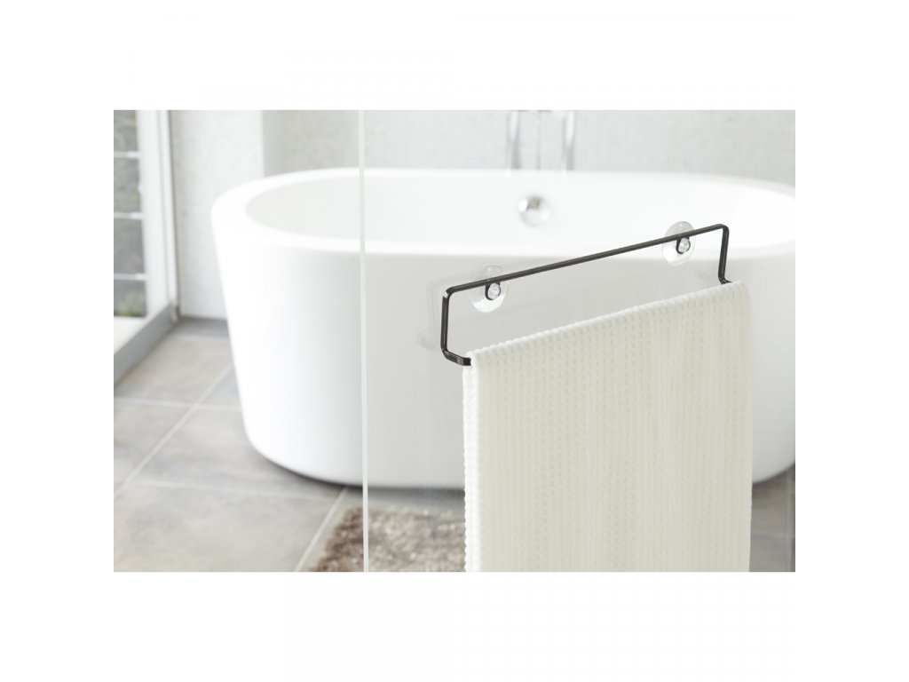 Nástěnný držák ručníku s přísavkami - YAMAZAKI Tower 6797. Vyrobeno z lakovaného kovu. Velikost: 7 x 35,5 x 4 cm (VxŠxH).