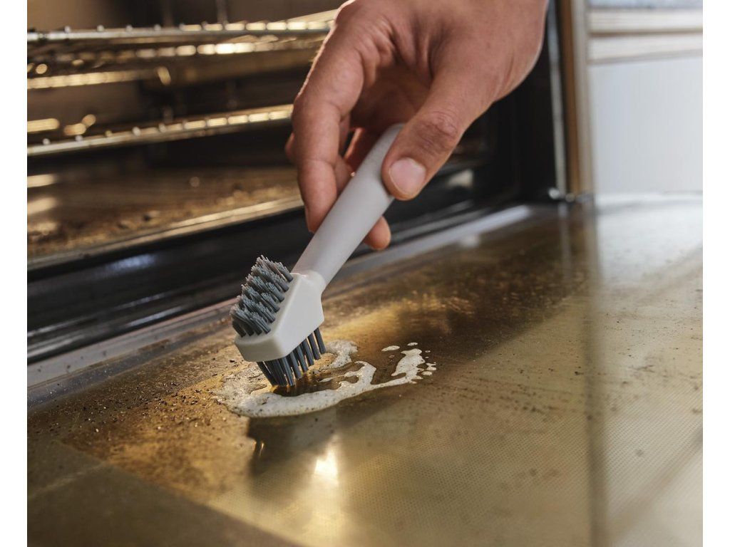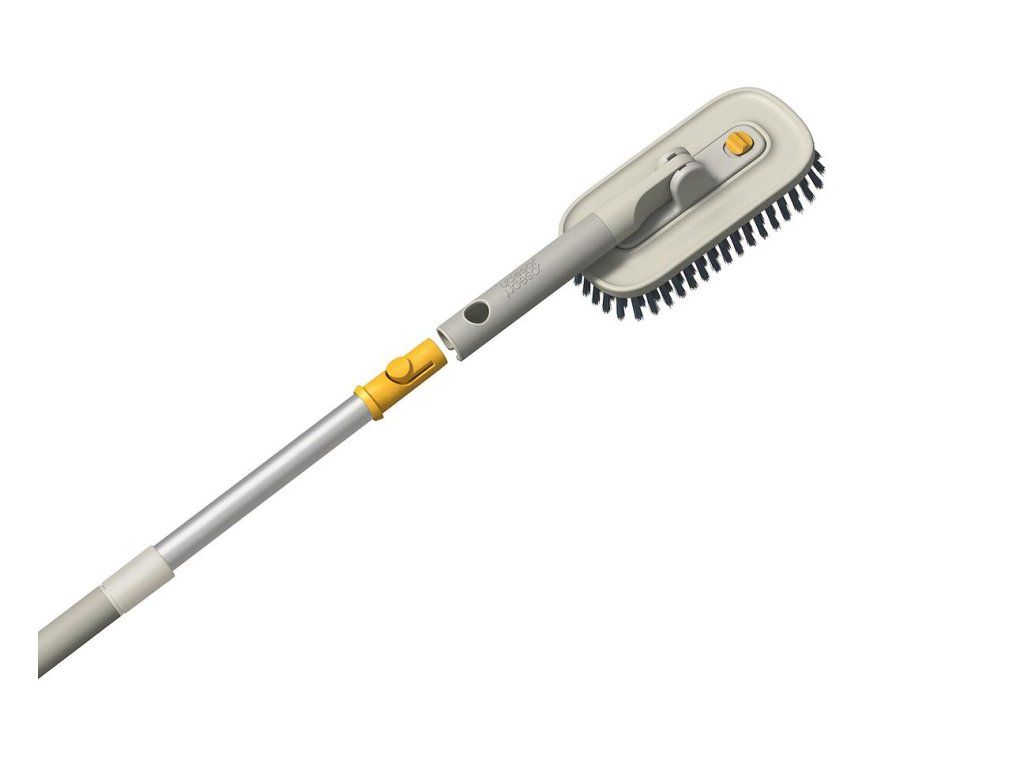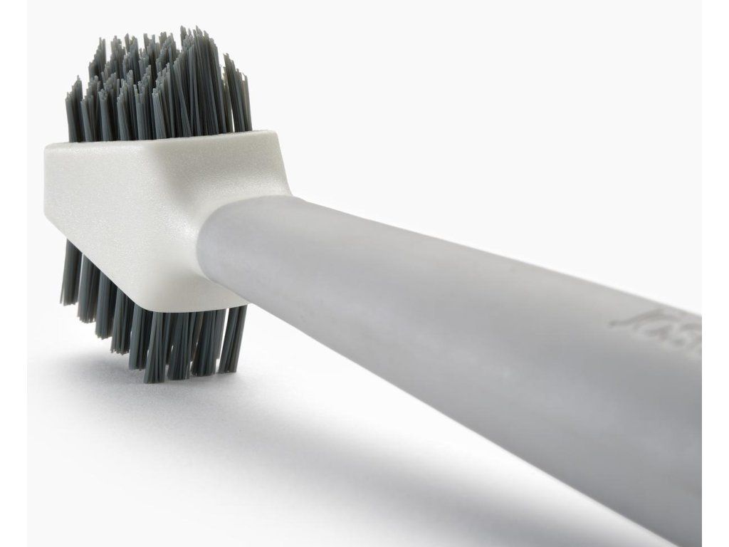 Kompaktní čistící kartáček JOSEPH JOSEPH CleanTech 6500021 s prostorově úsporným designem tři v jednom. Kartáč má ploché štětiny sloužící k údržbě menších ploch, štětiny ve tvaru V na čištění spár a integrovanou škrabku na špičce rukojeti na odstraňování vodního kamene a usazenin nečistot. Je ideální pro detailní čištění v těsných prostorech a kolem armatur. Nástroj má snadno uchopitelnou protiskluznou rukojeť.