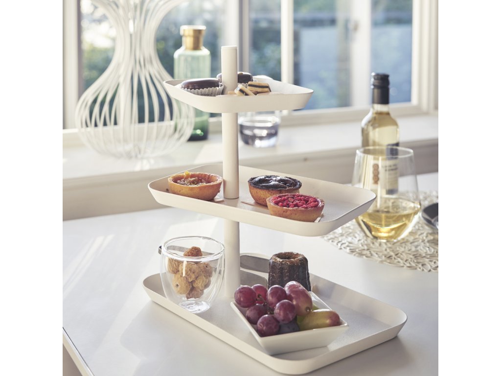 Servírovací stojan YAMAZAKI Tower 4280 se třemi otočnými miskami. Vhodný k servírování tapas i cukroví. Materiál: lakovaný kov. Velikost: 24,7 x 15,7 x 25,7 cm.