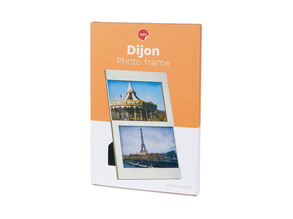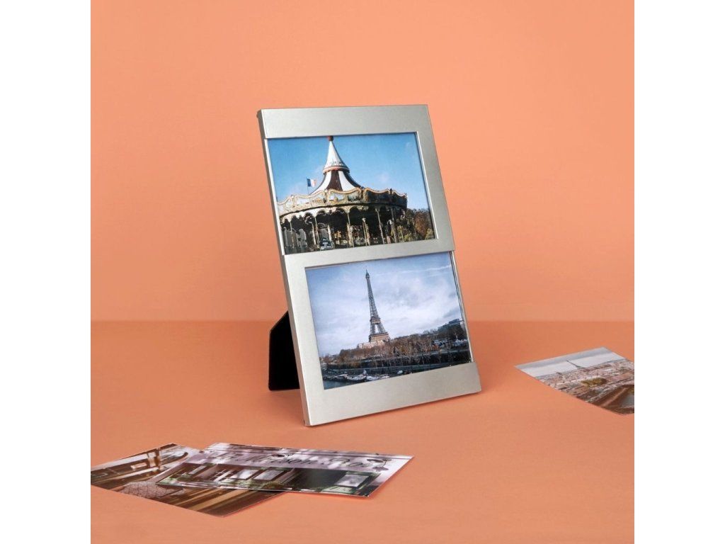 Plastový fotorámeček BALVI Dijon 23359 pro 2 fotografie formátu 10 x 15 cm. S opěrkou k postavení na polici. Vnější rozměr fotorámečku: 25 x 16,3 x 1 cm (VxŠxH).