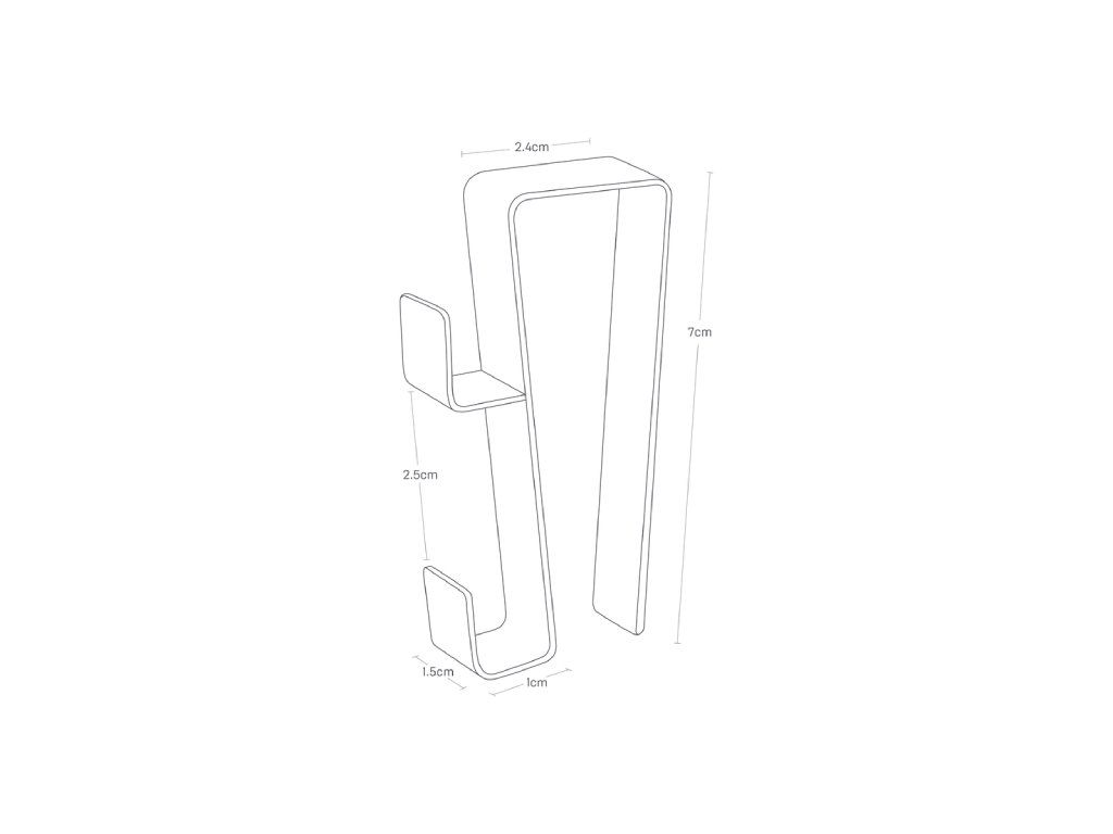 YAMAZAKI Tower Under Sink Hook - závěsný háček. Dvojitý závěsný háček na dvířka kuchyňské linky. Vyrobeno z lakovaného kovu.Velikost: 1,5 x 3,8 x 7,2 cm.