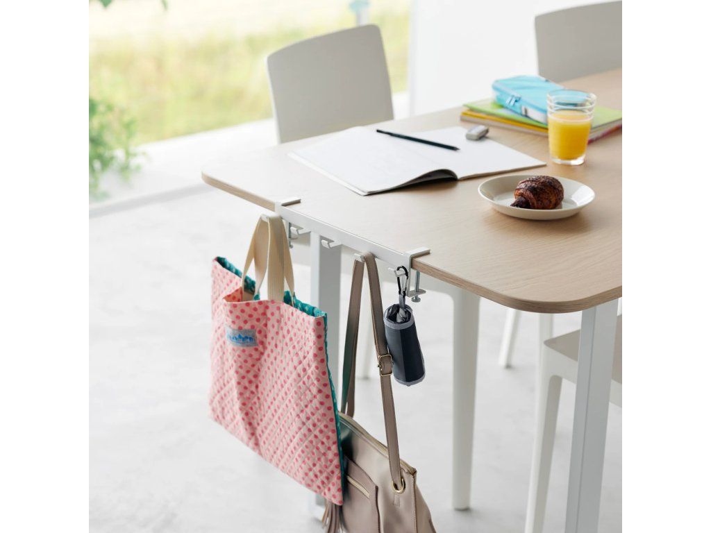 Kovová lišta s háčky - YAMAZAKI Tower 1576 - k upevnění ke stolové desce pomocí nastavitelných šroubů. Vybavena 5 háčky - ideální pro držení tašek, batohů, sluchátek a dalších domácích potřeb. Velikost: 7 x 30,5 x 7 cm (VxŠxH) / nosnost: 7,5 kg (1,5 kg na háček).