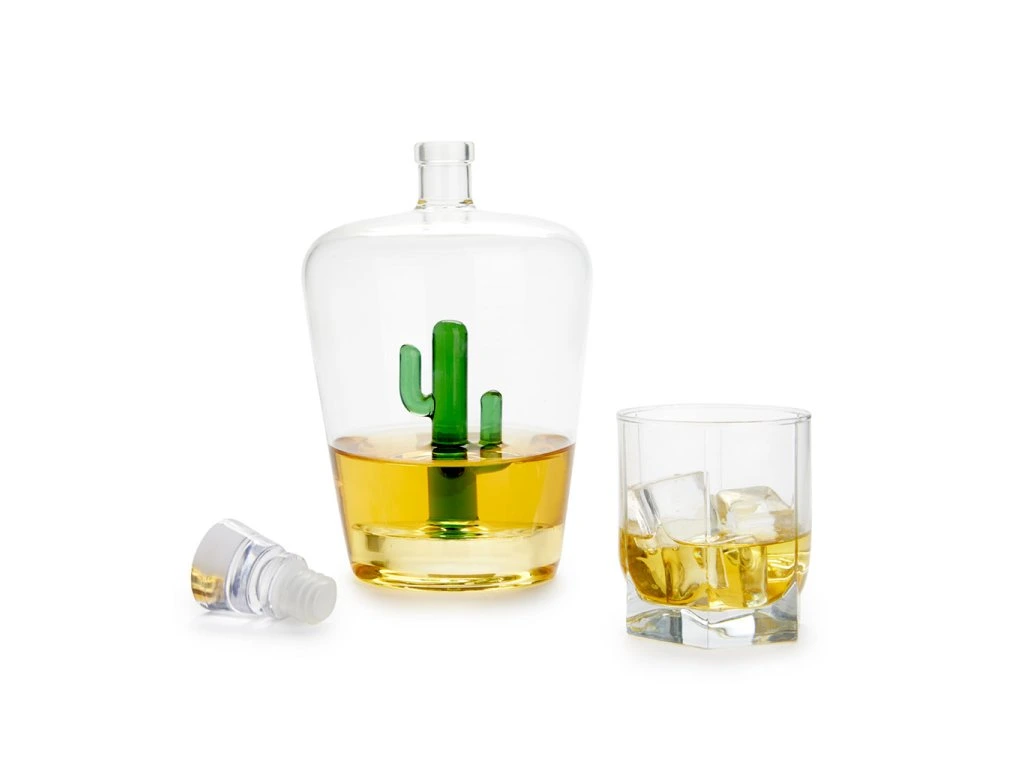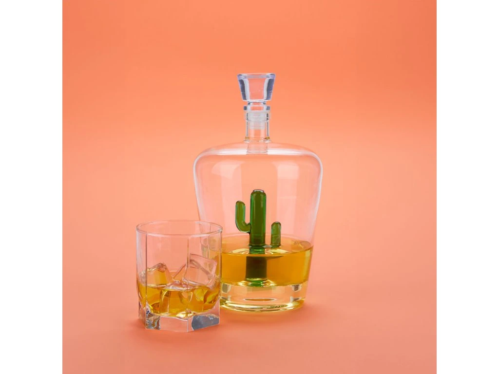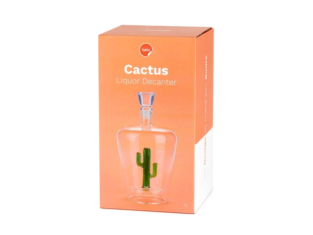 Skleněná karafa na destiláty BALVI Cactus. Velikost: 24 x 13 x 13 cm / obsah: 1L.