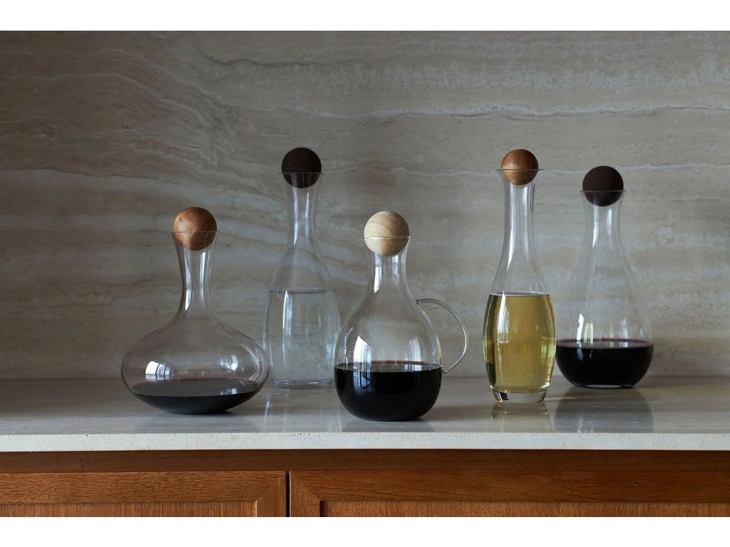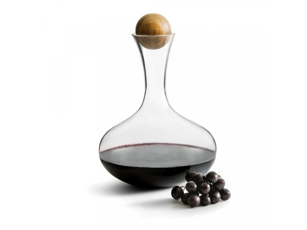 Skleněná ručně vyráběná karafa na červené víno SAGAFORM Nature s uzávěrem (kuličkou) z masivního dubového dřeva. Pro značku SAGAFORM navrhla švédská designerská dvojice Peter a Eva Moritz. Velikost: 27 x 19 x 19 cm / obsah 2L.
