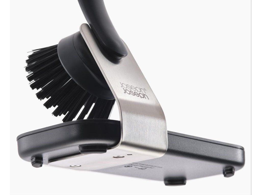 Kartáč na nádobí JOSEPH JOSEPH SinkTech 6500011 s velkým nerezovým úložným stojanem s odkapávací miskou pro rychlé schnutí. Kartáč má odolné štětiny pro efektivní čištění, integrovanou škrabku na pánve a je dodáván s jednou náhradní hlavicí. Výměna hlavice se provádí jednoduchým odšroubováním. Další příslušenství je k objednání samostatně.
