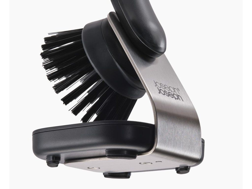Kartáč na nádobí JOSEPH JOSEPH SinkTech 6500010 se stojánkem z nerezové oceli s odkapávací miskou pro rychlé schnutí. Kartáč má odolné štětiny pro efektivní čištění, integrovanou škrabku na pánve a je dodáván s jednou náhradní hlavicí. Výměna hlavice se provádí jednoduchým odšroubováním. Další příslušenství je k objednání samostatně.