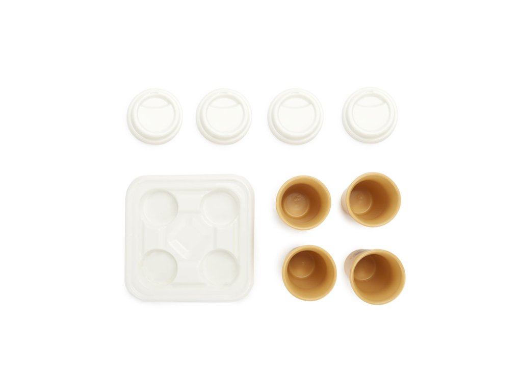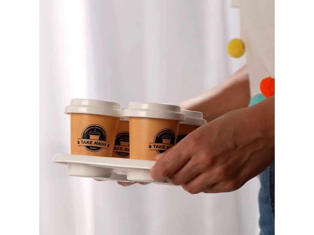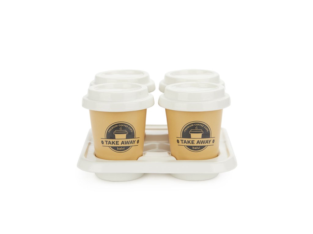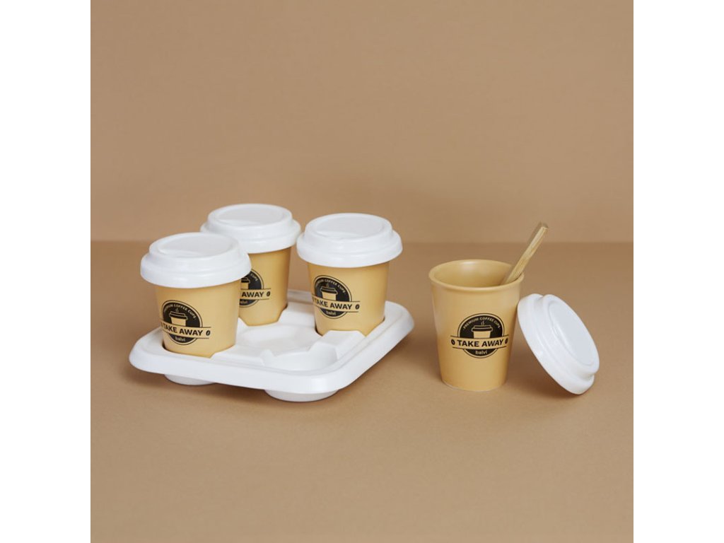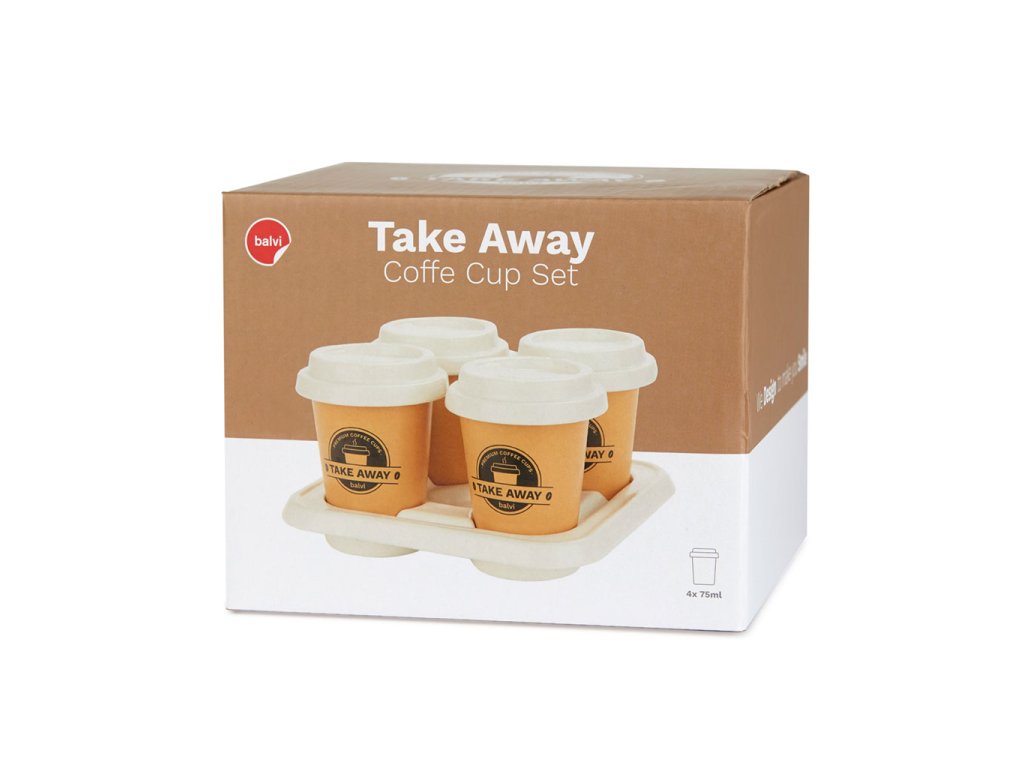 Porcelánová sada šálků na kávu/espresso BALVI Take Away 27833. Sada vypadá jako zmenšenina běžných papírových kelímků s táckem. Celá je ale vyrobena z kvalitního porcelánu. Šálky mají objem 750 ml. Jsou vhodné do myčky nádobí a lze je užít i k ohřevu v mikrovlnné troubě. Velikost sady: 8,5 x 15 x 15 cm (VxŠxH).