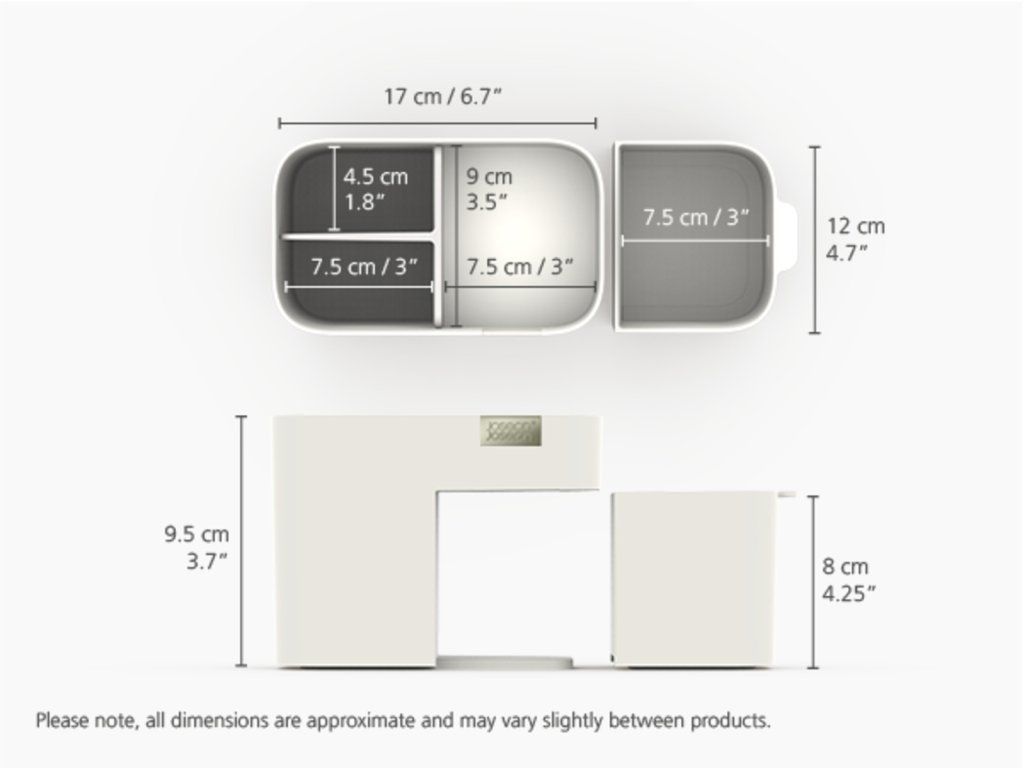 Kompaktní organizér na kosmetiku a doplňky JOSEPH JOSEPH Viva 7503. Hluboké přihrádky na štětce, řasenky a tužky na oční linky. Mělké přihrádky na balzámy na rty, pudřenky a oční stíny. Zásuvka s magnetickým uzávěrem na vatové tampony, vatové tyčinky a houbičky na odlíčení. Příznivci značky ocení chromované logo na předním okraji organizéru. Vnitřní přihrádky jsou odnímatelné. Čistěte ručně, vlhkým hadříkem.