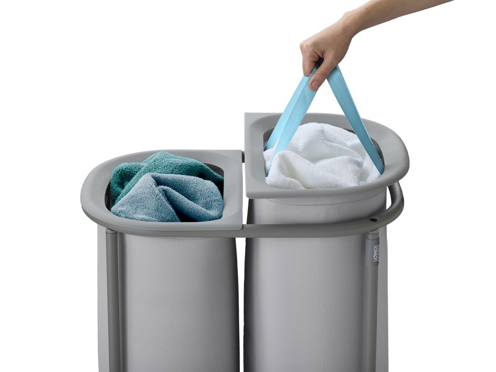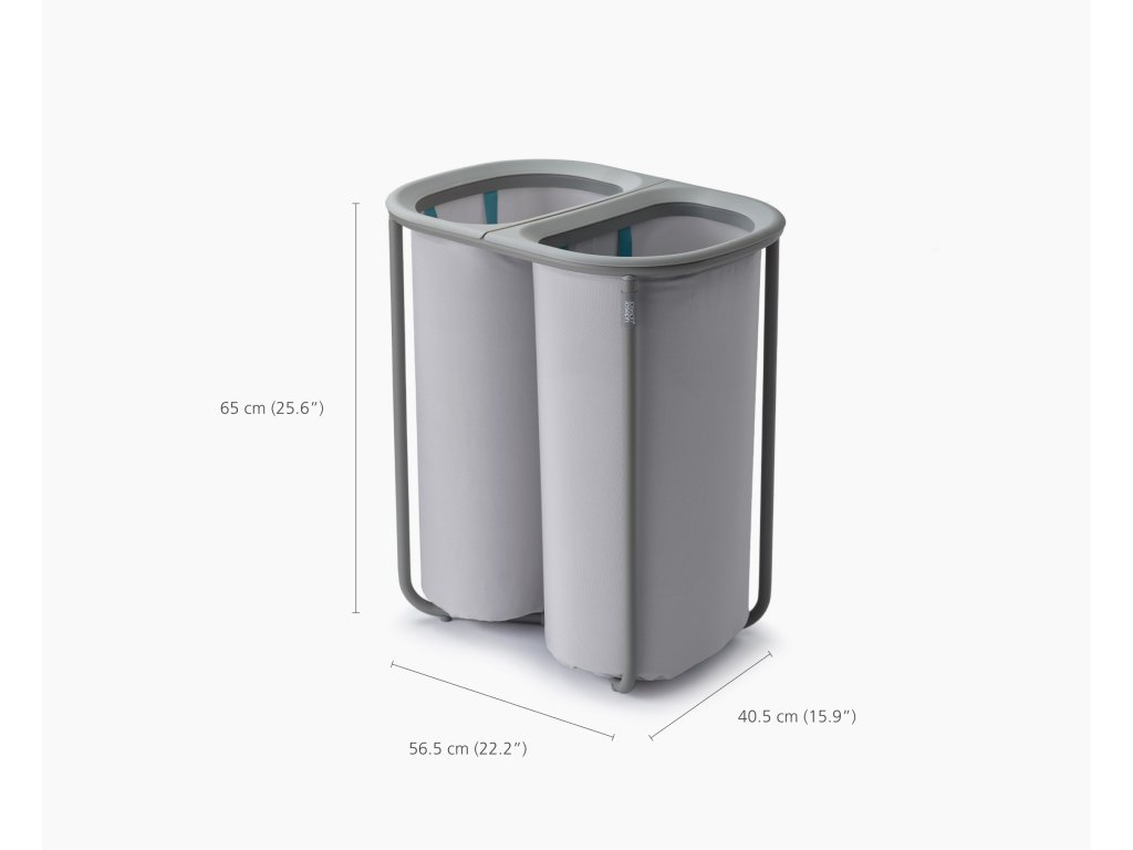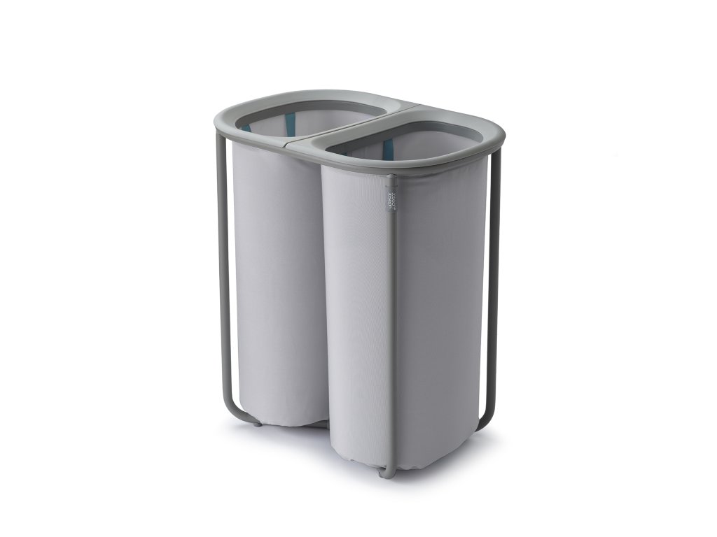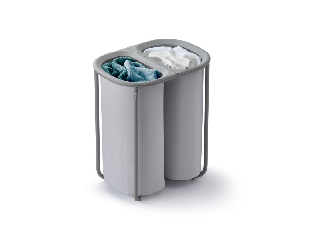 Koš na prádlo JOSEPH JOSEPH Duo 5000003 umožňuje předběžné třídění prádla do dvou snadno vyjmutelných pytlů (každý o objemu 40l). Pytle mají madla pro pohodlné přenášení do prádelny. Na spodní straně pytlů jsou úchytky usnadňující jejich vyprázdnění. Po vyprázdnění pytle snadno a rychle vložíte zpět do konstrukce koše. Praktický koš můžete umístit do ložnice, koupelny nebo komory. Koš je dodáván rozložený, zabalený v plochém kartonu. Vnitřní pytle koše je možné po odepnutí plastových částí prát v pračce (řiďte se pokyny na štítcích).
