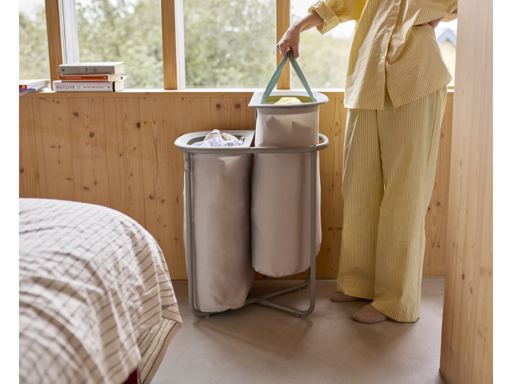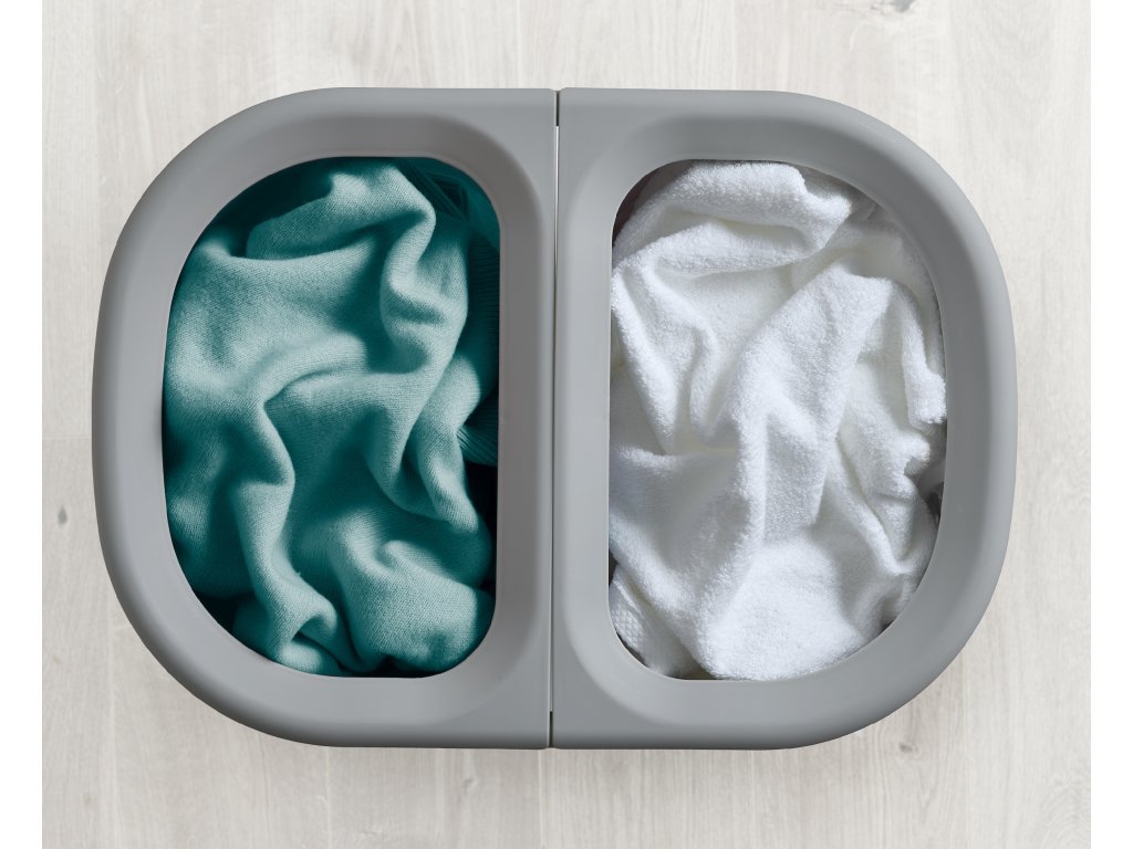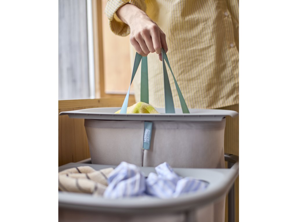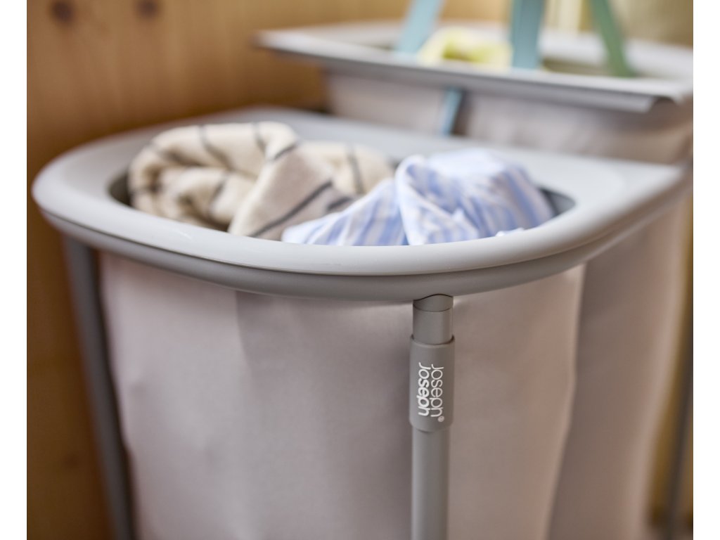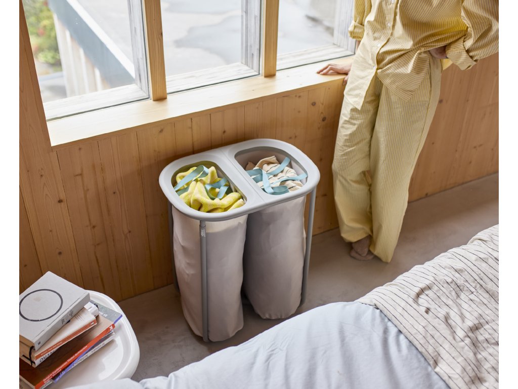 Koš na prádlo JOSEPH JOSEPH Duo 5000003 umožňuje předběžné třídění prádla do dvou snadno vyjmutelných pytlů (každý o objemu 40l). Pytle mají madla pro pohodlné přenášení do prádelny. Na spodní straně pytlů jsou úchytky usnadňující jejich vyprázdnění. Po vyprázdnění pytle snadno a rychle vložíte zpět do konstrukce koše. Praktický koš můžete umístit do ložnice, koupelny nebo komory. Koš je dodáván rozložený, zabalený v plochém kartonu. Vnitřní pytle koše je možné po odepnutí plastových částí prát v pračce (řiďte se pokyny na štítcích).