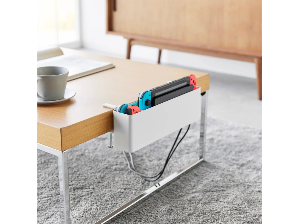 Úzký kovový organizér k upevnění ke stolové desce pomocí nastavitelných šroubů - YAMAZAKI Tower 1574. Nabízí pohodlné úložiště pro malé předměty. Obsahuje magnetické přepážky pro snadnou organizaci a spodní mezeru pro vedení kabelů nabíječek. Velikost: 9,5 x 30 x 10 cm (VxŠxH).