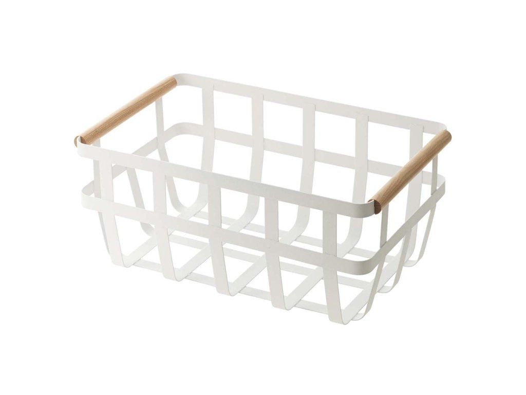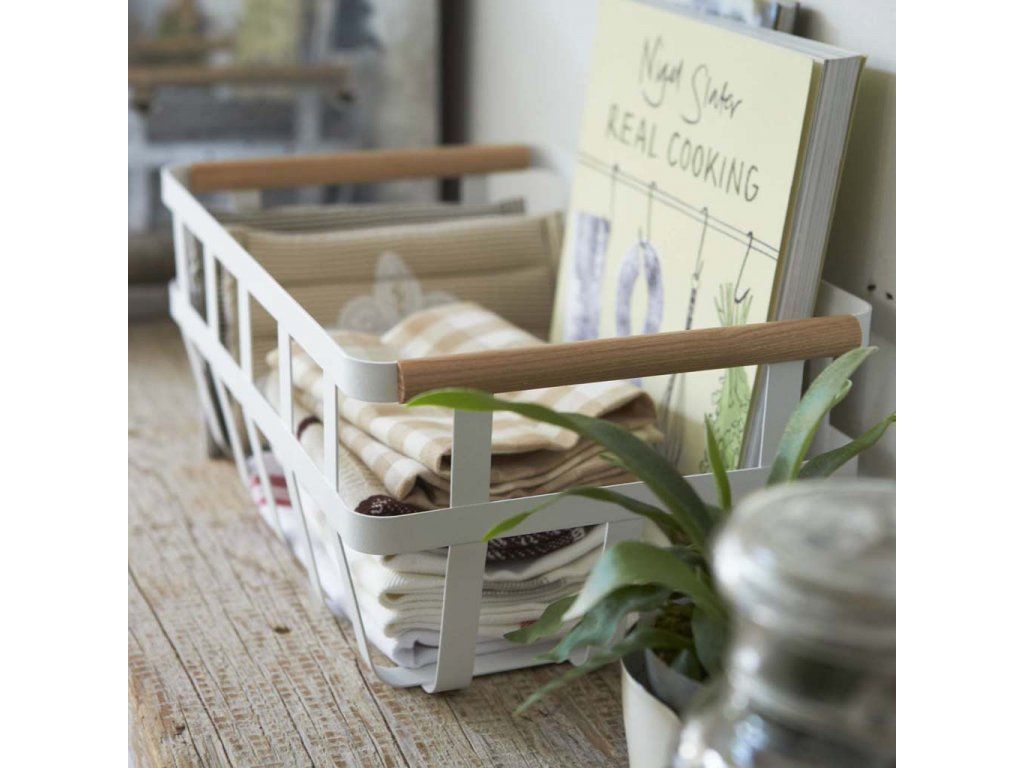 Košík na potraviny z lakovaného kovu a bukového dřeva - YAMAZAKI Tosca 2507. Velikost: 35,5 x 22 x 15,5 cm.