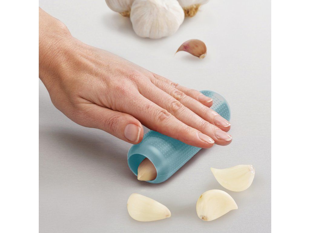 Silikonový loupač slupky česneku. Stroužek česneku vložíte do loupače a převalováním dlaní česnek jednoduše a účinně oloupete. Velikost: 3,8 x 10 x 3,8 cm (VxŠxH).