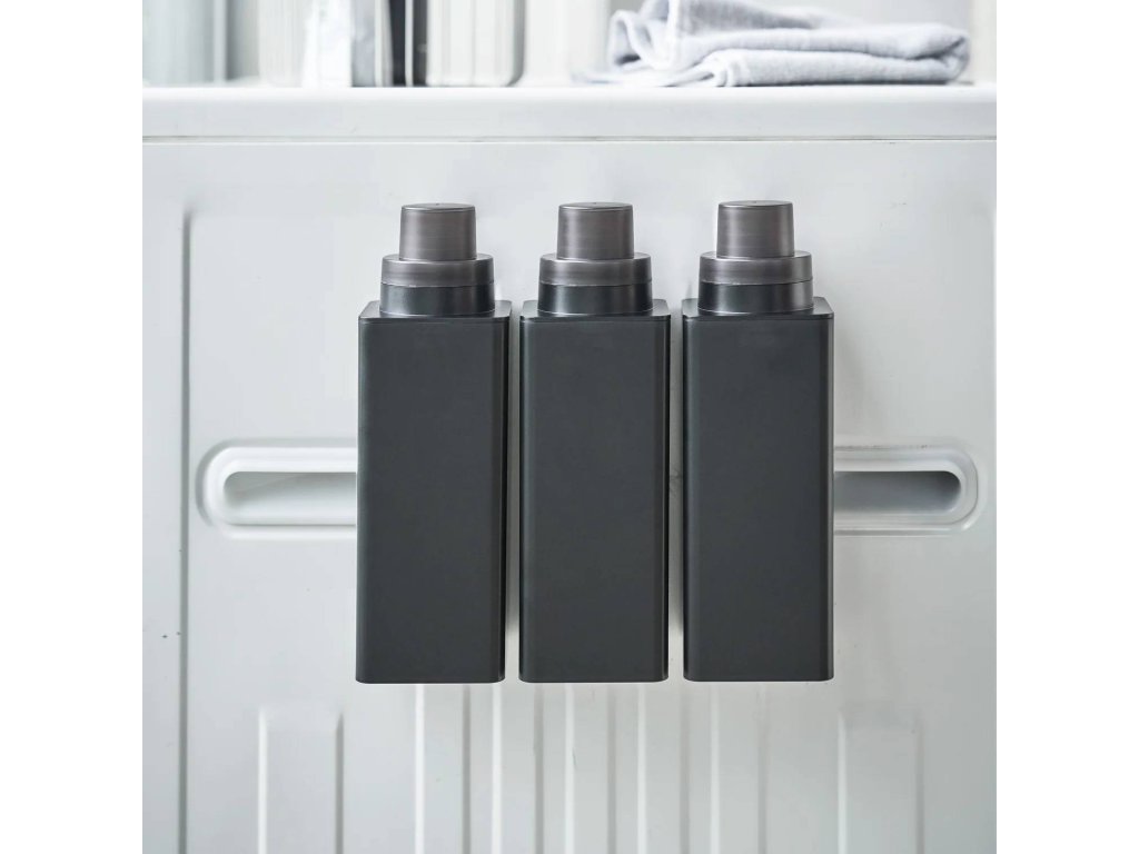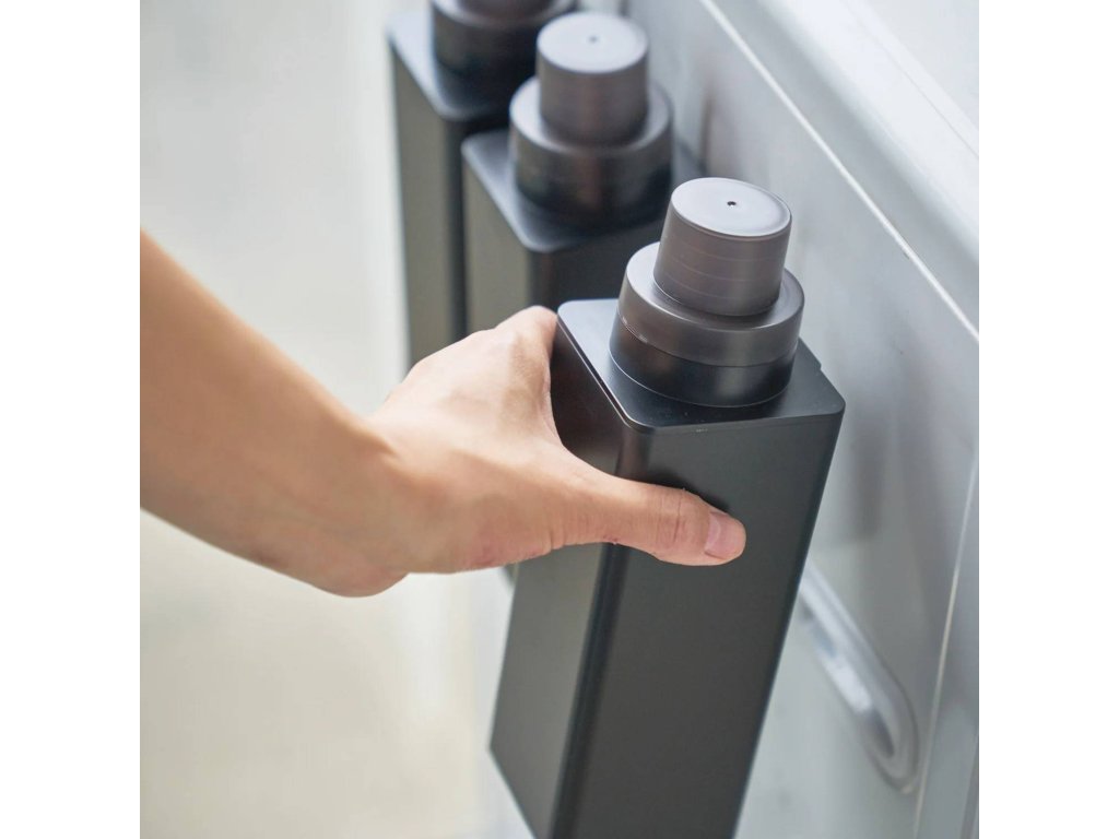 Snadno skladovatelná magnetická lahev s odměrkou YAMAZAKI Tower 4852 (bílá) / 4853 (černá). Láhev má magnetickou zadní stranu, která se snadno připevňuje na kovové povrchy. Je ideální pro uložení tekutého mýdla nebo pracího prostředku a obsahuje praktické víčko, které slouží i jako odměrka o objemu cca 40 ml.