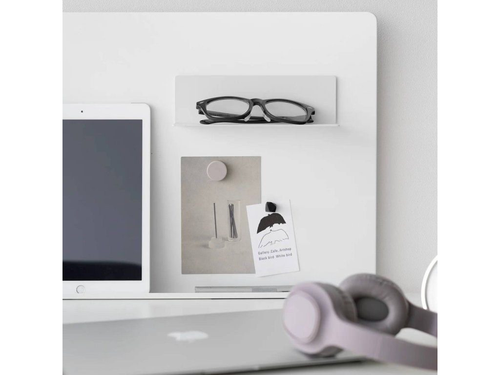Kompaktní polička YAMAZAKI Tower 10094 (bílá) / 10095 (černá) dodávaná jako doplněk k magnetickému panelu 10066 / 10067. Kovová polička s magnetickou zadní stranou poskytuje praktický úložný prostor pro drobné předměty. Instalace je možná ve svislé i obrácené poloze.