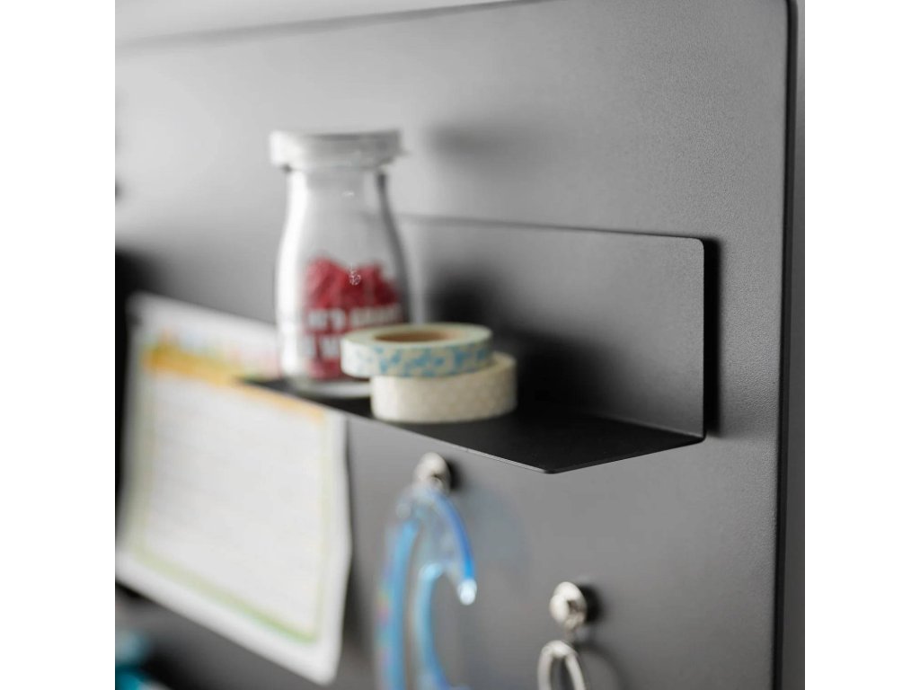 Kompaktní polička YAMAZAKI Tower 10094 (bílá) / 10095 (černá) dodávaná jako doplněk k magnetickému panelu 10066 / 10067. Kovová polička s magnetickou zadní stranou poskytuje praktický úložný prostor pro drobné předměty. Instalace je možná ve svislé i obrácené poloze.