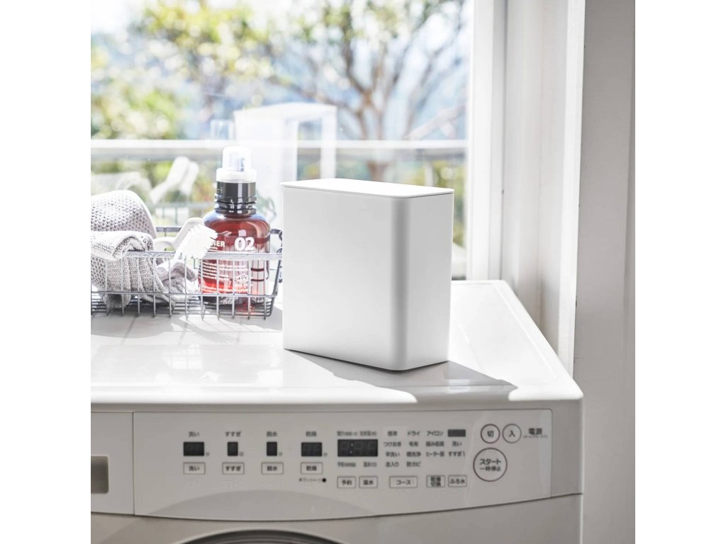 Magnetickou nádobu - YAMAZAKI Tower 4266 (bílá) / 4267 (černá) - můžete nechat stát volně nebo ji upevnit na pračku a jiné kovové povrchy. Nádoba o objemu 1,8l má těsnící víko a je vhodná pro uložení např. kolíčků, prádelních sáčků, pracích prostředků. Maximální nosnost je 1,5 kg. Nádoba je vyrobena z ABS, magnetu a silikonu. Velikost: 17 x 17 x 9,5 cm (VxŠxH) / hmotnost: 0,48 kg.