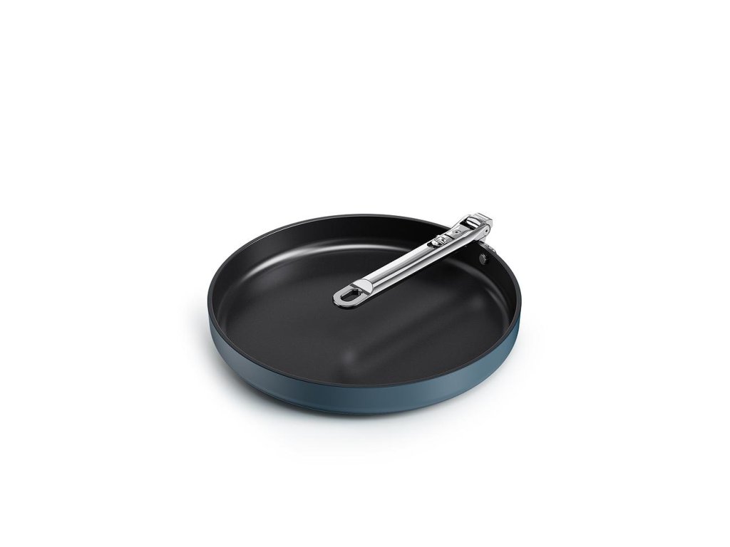 prémiová řada nádobí profesionální kvality a inovativního designu. Nejkompaktnější nádobí pro prostorově úsporné skladování. Barva Midnight Blue.
