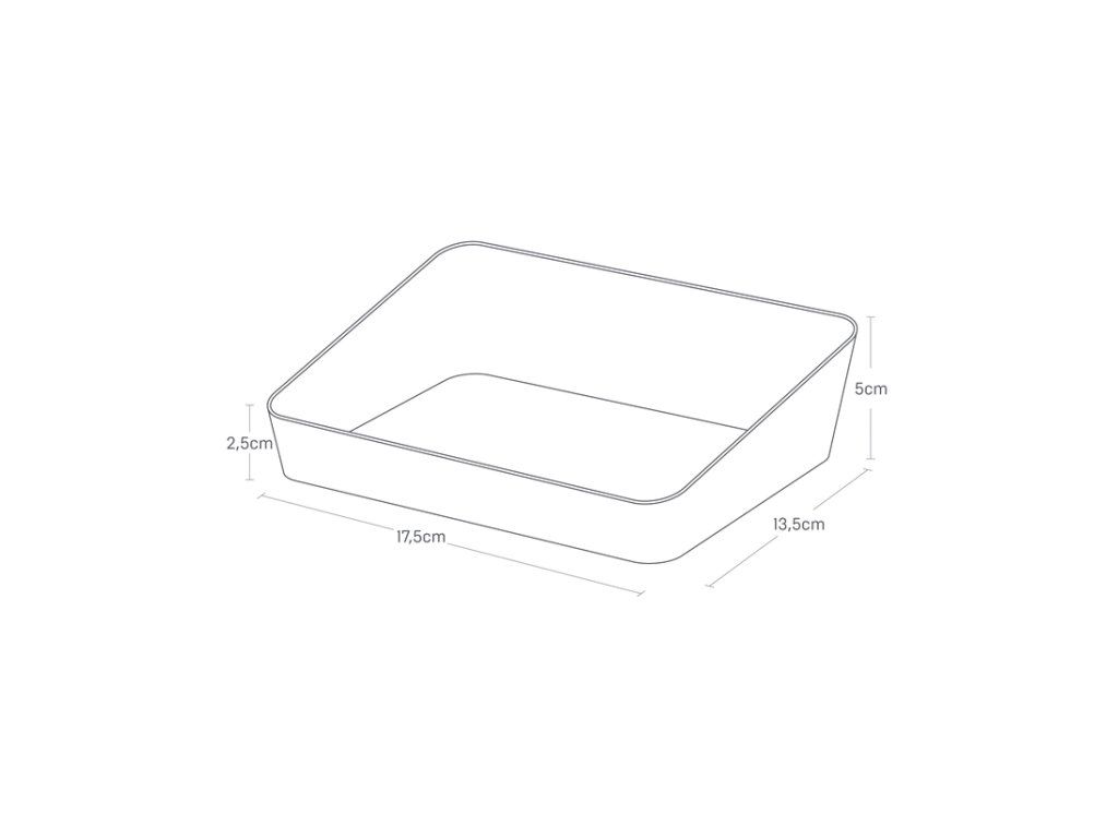 Stylový minimalistický zásobník YAMAZAKI Tower 4219. K užití do zásuvky (jako přihrádka na kancelářské drobnosti), do koupelny (jako odkladná miska na make-up), do ložnice (k odložení šperků a hodinek) nebo do předsíně (k odložení klíčů, peněženky). Materiál: lakovaný kov. Ošetřujte měkkým vlhkým hadříkem, osušte. Velikost: 5 x 17,5 x 13,5 cm (VxŠxH) / hmotnost: 0,32kg.