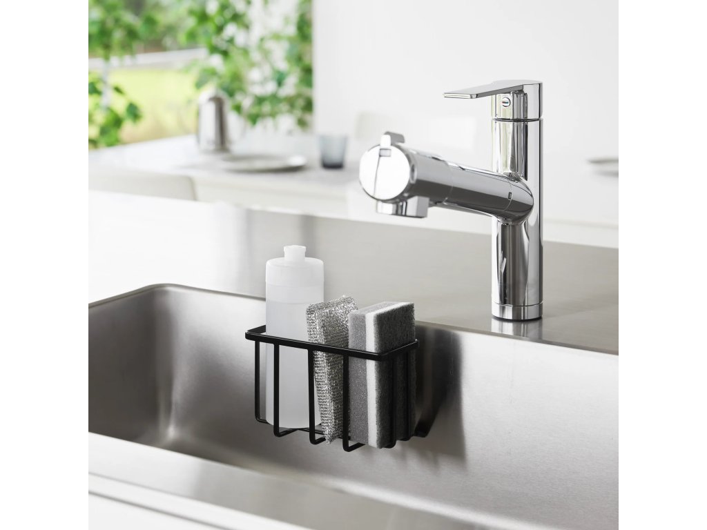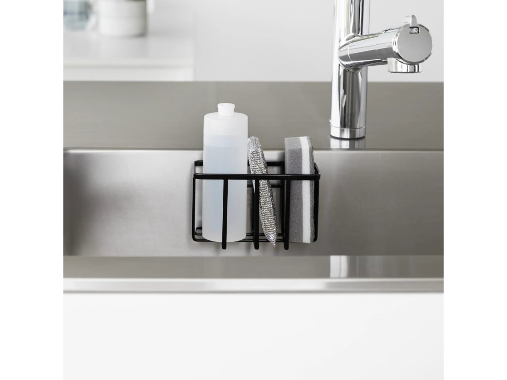 Kovový nástěnný košík do kuchyně i koupelny - YAMAZAKI Film Hook 6916 S . Košík se nasazuje na dva nástěnné háčky. Součástí háčků jsou upevňovací samolepící fólie, které košík spolehlivě udrží na hladkém neporézním povrchu. Košík je určen do dřezu k odkládání mycího prostředku a houbiček nebo do koupelny k odložení šampónů a sprchových gelů. Materiál: košík- kov / samolepící háček - polykarbonát, PET, silikon.