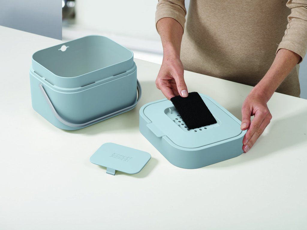 Nádobka na kompostovatelný odpad a zbytky jídel k umístění na pracovní plochu - JOSEPH JOSEPH Stack 4. Stack 4 je navržena tak, aby redukovala zápach, který se přirozeně uvolňuje z biologického odpadu. Přispívá k tomu promyšlená ventilace snižující vlhkost - hlavní příčinu nepříjemného zápachu. Vzduch je přiváděn dvojitou stěnou a po cirkulaci v nádobě odváděn přes výměnný uhlíkový filtr umístěný ve víčku nádoby. Nádobka má korpus ze snadno čistitelného polypropylenu (v odstínech Stone/30015 a Graphite/30016), výklopné víčko a robustní nerezové madlo. Vnitřní stabilizační otvory a odnímatelný rámeček s víčkem poskytují stabilitu i pro rozměrově ne zcela přizpůsobené sáčky. Hrana odnímatelného rámečku je dostatečně pevná i pro vyklepávání zbytků kávy z filtru espressa.
