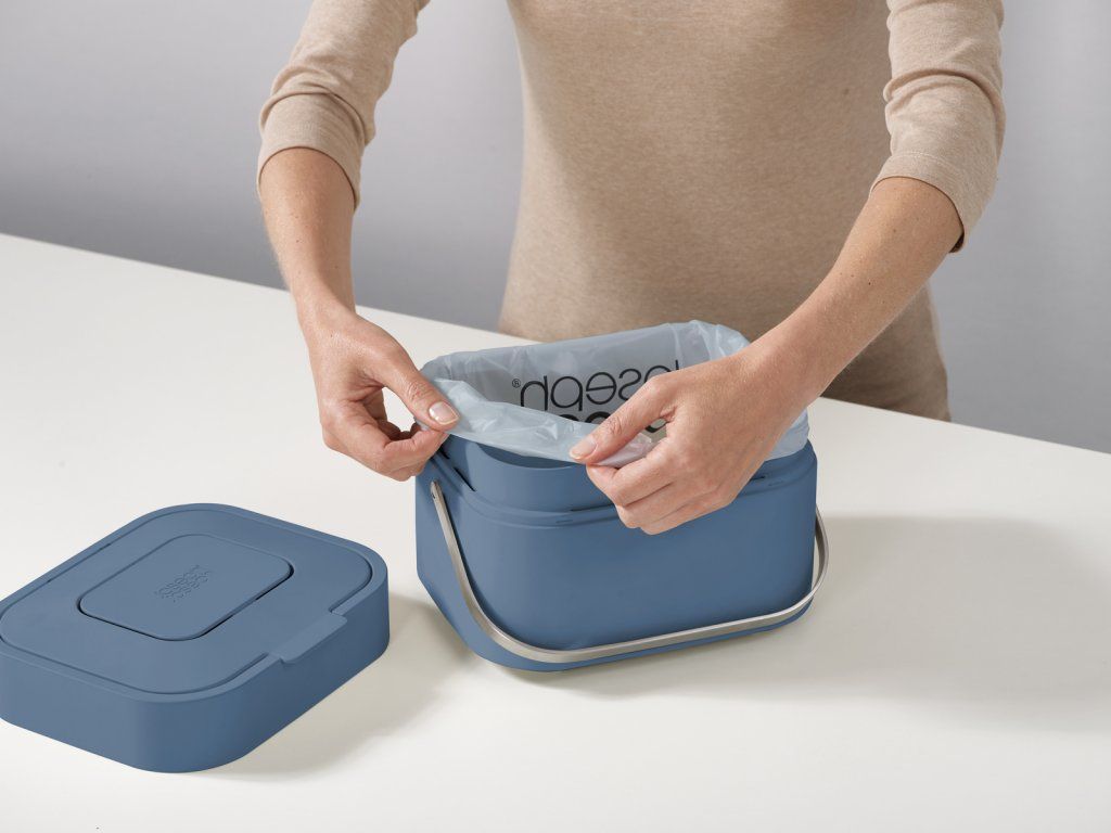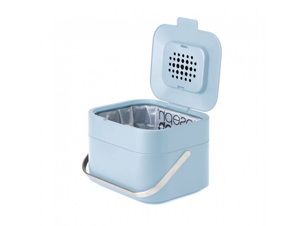 Nádobka na kompostovatelný odpad a zbytky jídel k umístění na pracovní plochu - JOSEPH JOSEPH Stack 4. Stack 4 je navržena tak, aby redukovala zápach, který se přirozeně uvolňuje z biologického odpadu. Přispívá k tomu promyšlená ventilace snižující vlhkost - hlavní příčinu nepříjemného zápachu. Vzduch je přiváděn dvojitou stěnou a po cirkulaci v nádobě odváděn přes výměnný uhlíkový filtr umístěný ve víčku nádoby. Nádobka má korpus ze snadno čistitelného polypropylenu (v odstínech Stone/30015 a Graphite/30016), výklopné víčko a robustní nerezové madlo. Vnitřní stabilizační otvory a odnímatelný rámeček s víčkem poskytují stabilitu i pro rozměrově ne zcela přizpůsobené sáčky. Hrana odnímatelného rámečku je dostatečně pevná i pro vyklepávání zbytků kávy z filtru espressa.