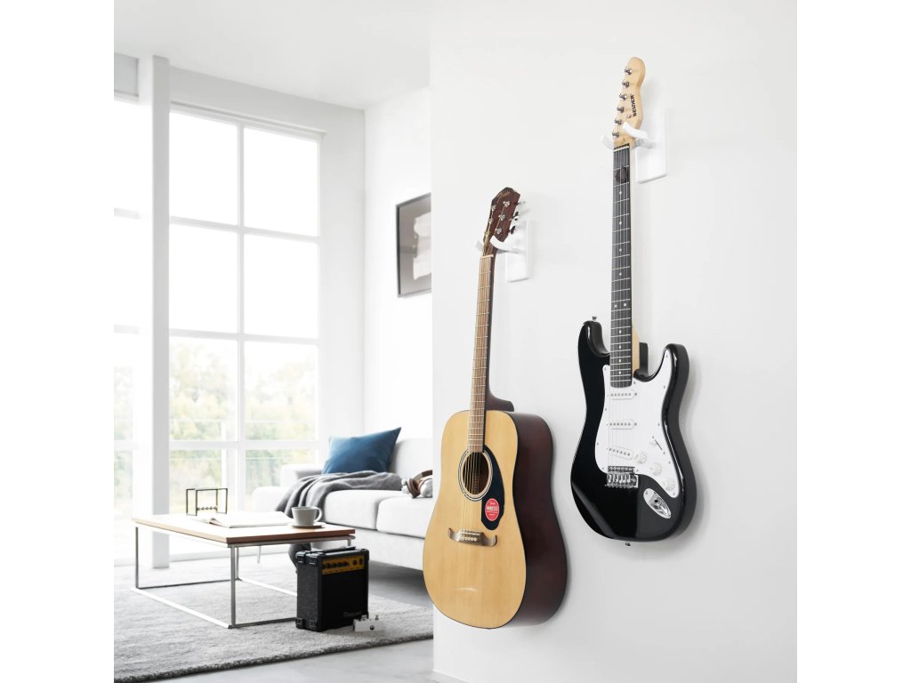 Nástěnný držák pro vystavení kytar - YAMAZAKI Tower 1925. Otočný hák pro různé tvary krků nástrojů. Kontaktní silikonové ochranné kryty. Snadná instalace pomocí sádrokartonových kolíčků nebo šroubů. Materiál: kov, silikon, ABS. Velikost: 14 x 8 x 11,5 cm (VxŠxH) / nosnost: 6 kg.