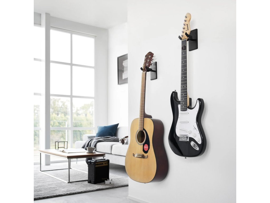 Nástěnný držák pro vystavení kytar - YAMAZAKI Tower 1926. Otočný hák pro různé tvary krků nástrojů. Kontaktní silikonové ochranné kryty. Snadná instalace pomocí hmoždinek do sádrokartonu nebo šroubů. Materiál: kov, silikon, ABS. Velikost: 14 x 8 x 11,5 cm (VxŠxH) / nosnost: 6 kg.