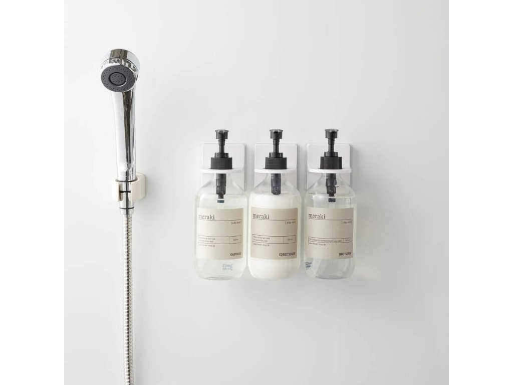 Překáží vám váš dávkovač na umyvadle nebo ve sprchovém košíčku? Zavěste jej na stěnu. Pomocníkem vám bude univerzální nástěnný držák dávkovače tekutého mýdla - YAMAZAKI Film Hook 5345 (bílý) / 5346 (černý). Slouží k uchycení dávkovačů o průměru nádobky max. 9 cm a hrdla nádobky 2,4 – 3,2 cm. Dávkovač není součástí balení tohoto výrobku. Jednoduchá instalace držáku na stěnu se provádí pomocí nástěnného háčku jehož součástí je upevňovací samolepící fólie. Určeno pro instalaci na hladkém neporézním povrchu. Součástí balení jsou pomocné podpěrné kroužky o velikost 2,4 a 2,8 cm. Držák je vyroben z ABS, polykarbonátu, PET a polyuretanu. Maximální zatížitelnost je 1 kg. Velikost: 7 x 6,3 x 9 cm (VxŠxH) / hmotnost: 0,06 kg.