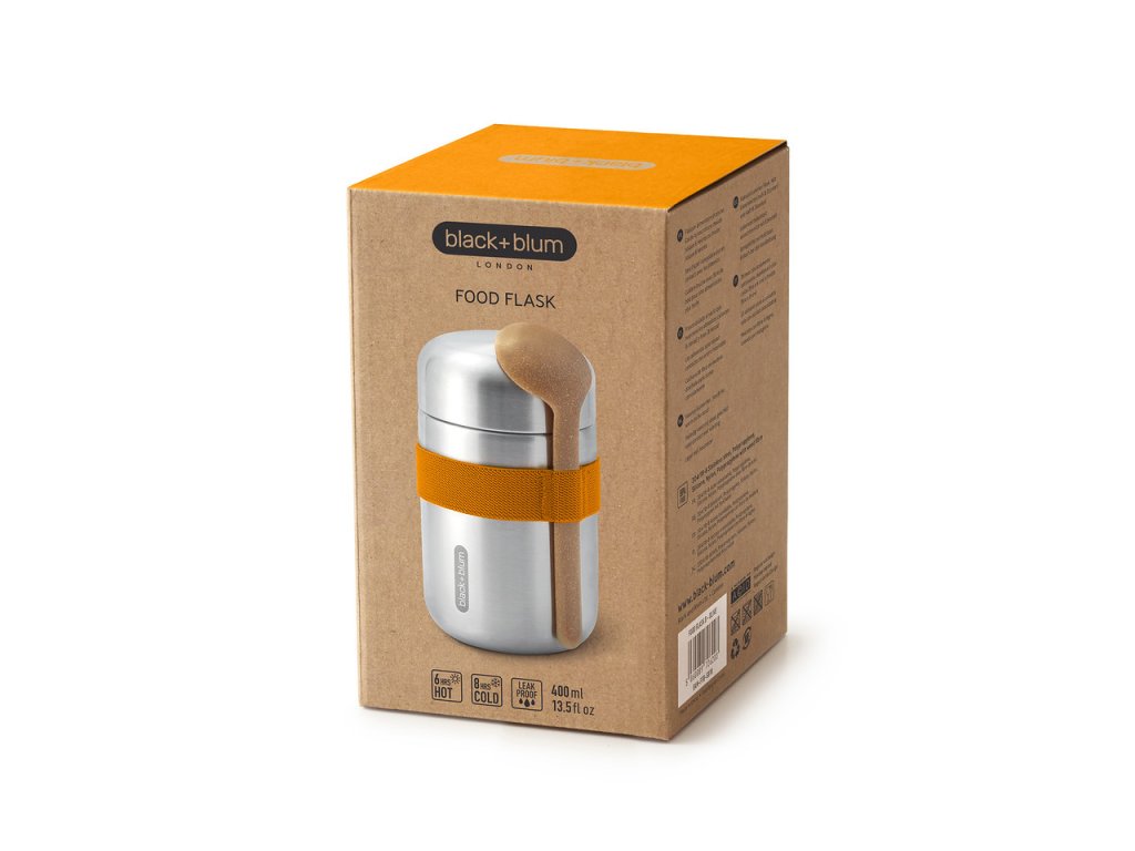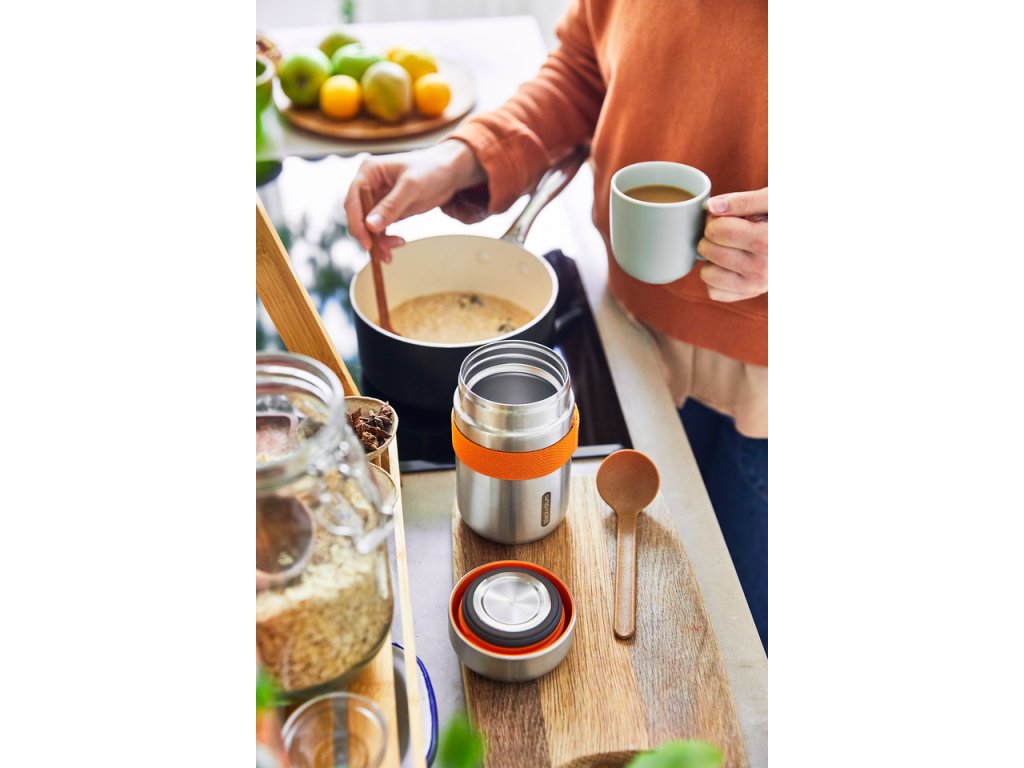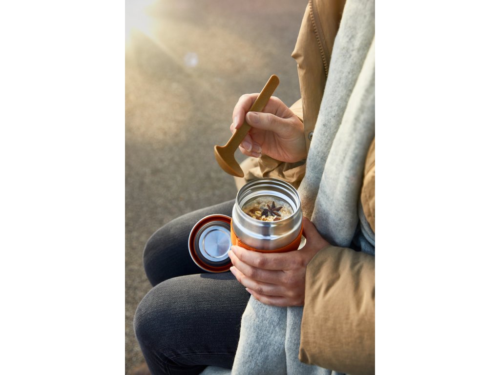 Vakuově izolovaná nerezová termoska o objemu 400 ml . 100% nepropustná. Do kontaktu s potravinami přicházejí pouze nerezové části. Termoska udrží jídlo teplé 6 hodin nebo studené 8 hodin. Součástí balení je lžička.