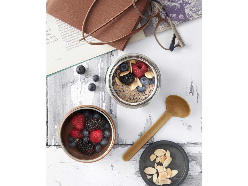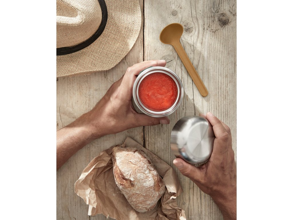 Vakuově izolovaná nerezová termoska o objemu 400 ml . 100% nepropustná. Do kontaktu s potravinami přicházejí pouze nerezové části. Termoska udrží jídlo teplé 6 hodin nebo studené 8 hodin. Součástí balení je lžička.