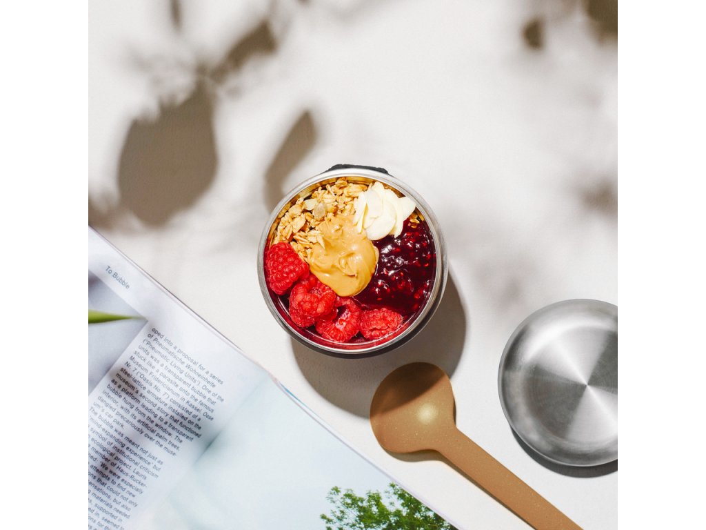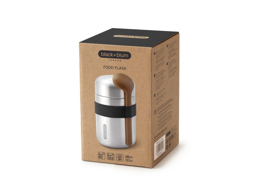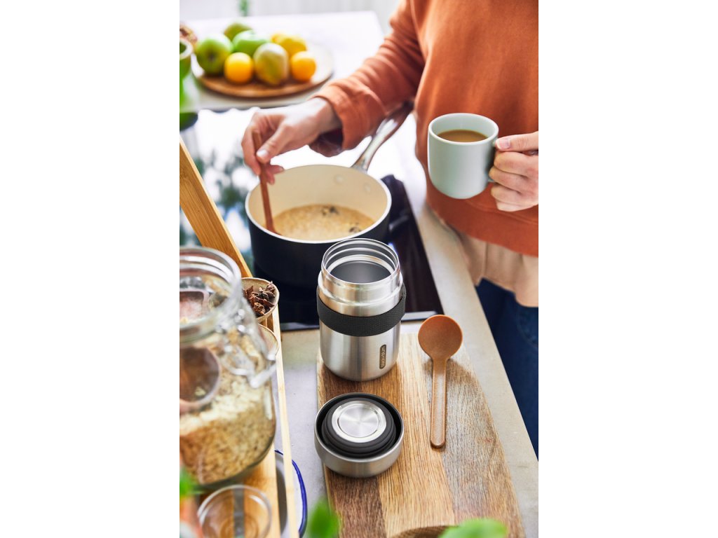 Vakuově izolovaná nerezová termoska o objemu 400 ml . 100% nepropustná. Do kontaktu s potravinami přicházejí pouze nerezové části. Termoska udrží jídlo teplé 6 hodin nebo studené 8 hodin. Součástí balení je lžička.
