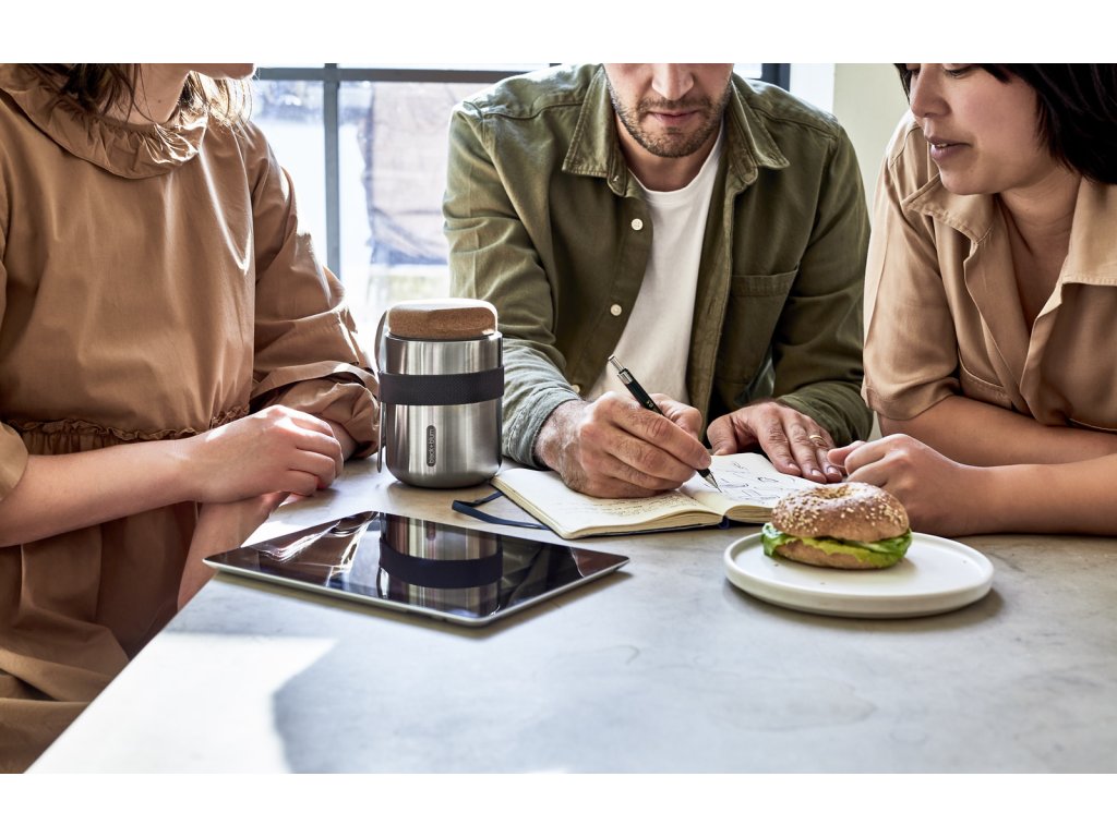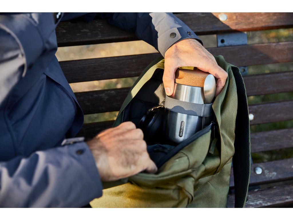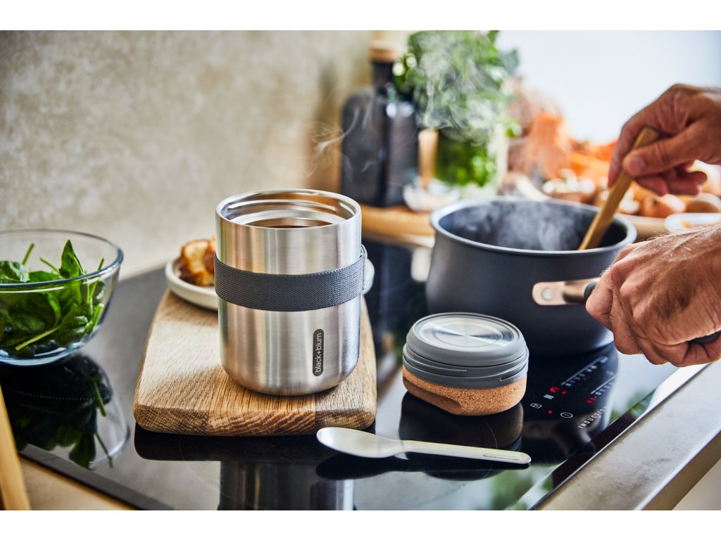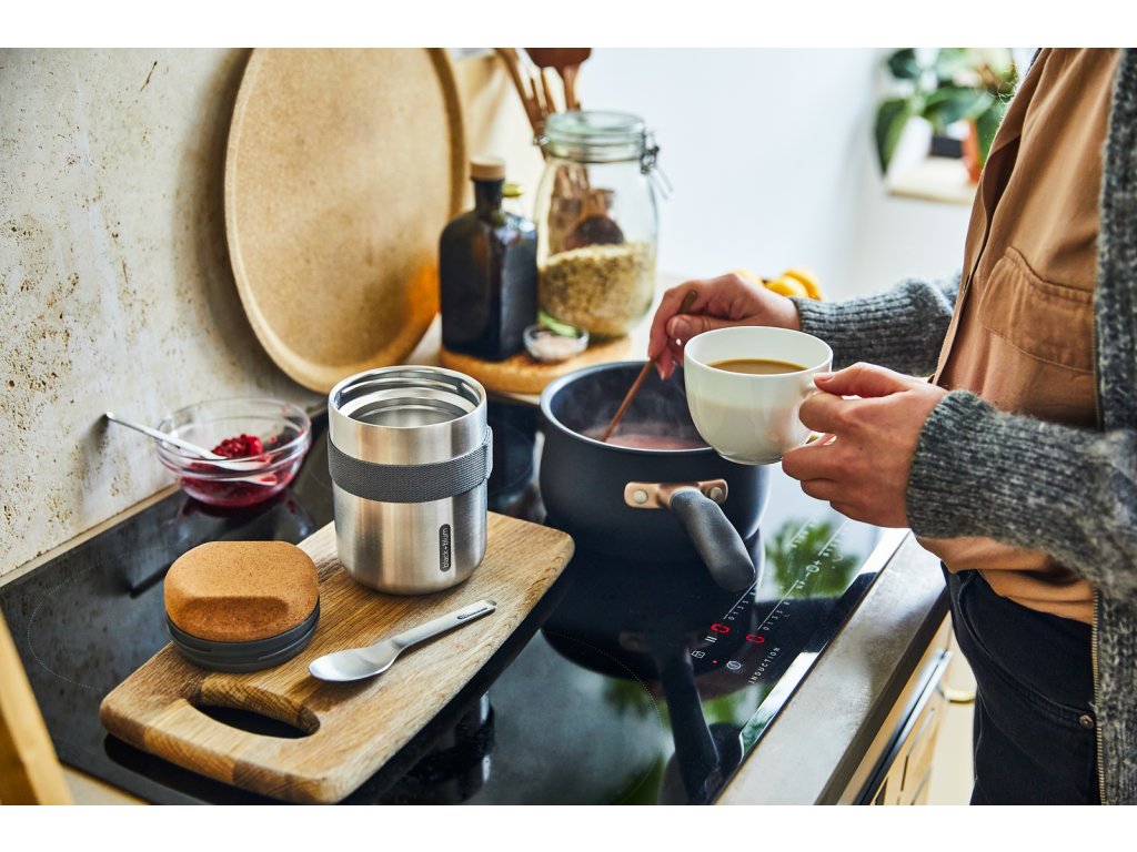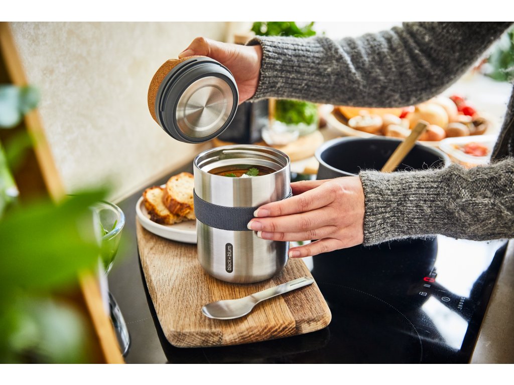 Vakuově izolovaná nerezová termoska o objemu 550 ml . Dvoustěnná – 100% nepropustná - izolovaná vysoce kvalitní nerezová ocel. Do kontaktu s potravinami přicházejí pouze nerezové části. Termoska udrží jídlo teplé 6 hodin nebo studené 8 hodin. Víčko z přírodního korku s drážkami pro lepší uchopení. Součástí balení je nerezová lžička a nylonový popruh.