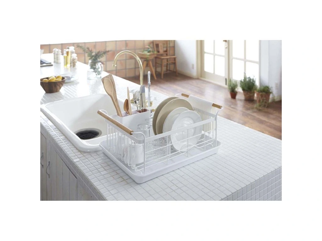 YAMAZAKI Tosca - odkapávač.Elegantní odkapávač z lakovaného kovu, bukového dřeva a plastu. Velikost: 47 x 33,5 x 20 cm