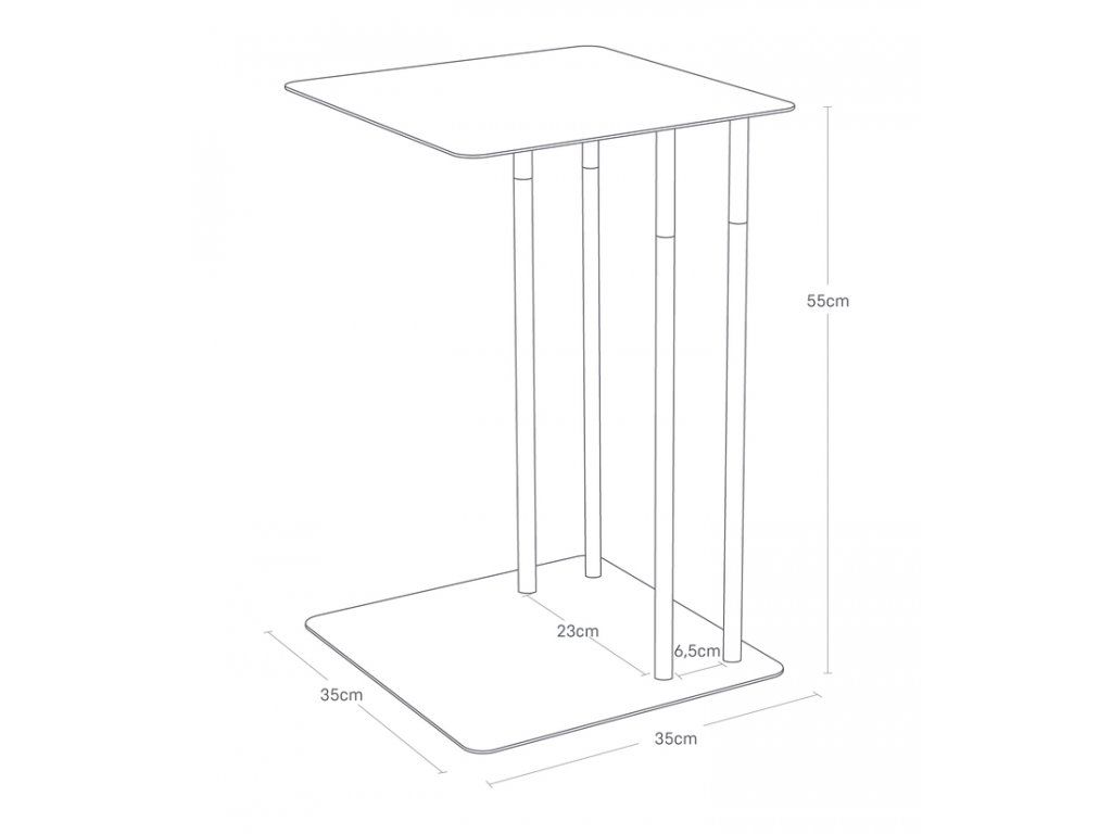 Stolek k boku i čelu pohovky - YAMAZAKI Plain 4803. Tvar U umožňující zasunutí základny stolku pod pohovku. Kovová konstrukce. Dřevěné nožky. Velikost: 55 x 35 x 35 cm (VxŠxH).