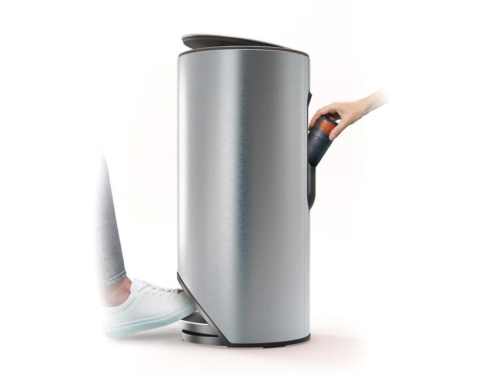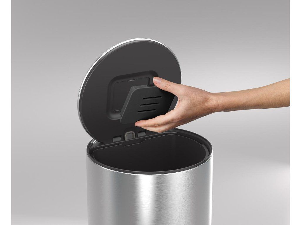 Stylový odpadkový koš JOSEPH JOSEPH Arc 30l má velký pedál úhledně vnořený do korpusu koše - nepřesahuje a šetří cenný prostor na podlaze. Na zadní straně korpusu je přihrádka pro náhradní sáčky na odpadky. Nerezové víko koše s povrchem odolný proti otiskům má měkké (soft-close) zavírání. Na spodní straně víka koše je pod odnímatelným víčkem umístěn výměnný uhlíkový filtr odnímající zápach odpadků. Díky filtru není nutné koš vynášet před úplným zaplnění. Náhradní filtry jsou dodávány výrobcem v balení po dvou kusech (30005). Vnitřní plastový koš je snadno vyjmutelný. S koši ARC jsou kompatibilní pevné sáčky IW5 (30029, 30133).