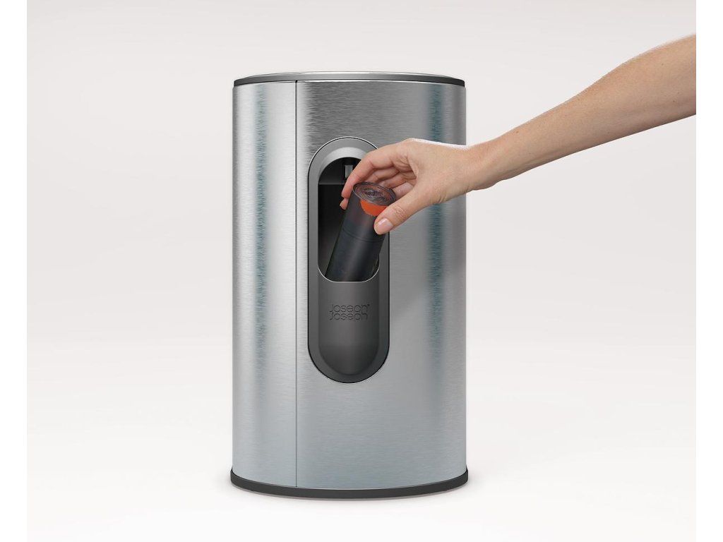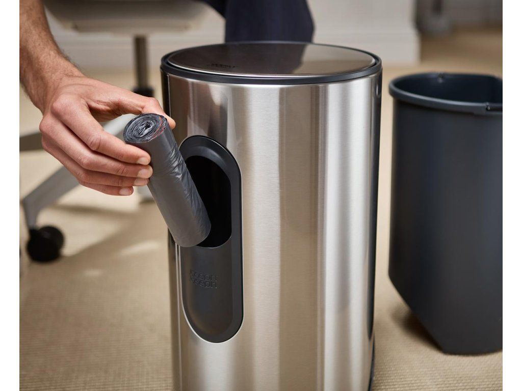 Stylový odpadkový koš JOSEPH JOSEPH Arc 10l má pedál úhledně vnořený do korpusu koše - nepřesahuje a šetří cenný prostor na podlaze. Na zadní straně korpusu je přihrádka pro náhradní sáčky na odpadky. Nerezové víko koše s povrchem odolným proti otiskům má měkké (soft-close) zavírání. Vnitřní plastový koš je snadno vyjmutelný. S koši ARC jsou kompatibilní pevné sáčky IW9 (30153, 30154).