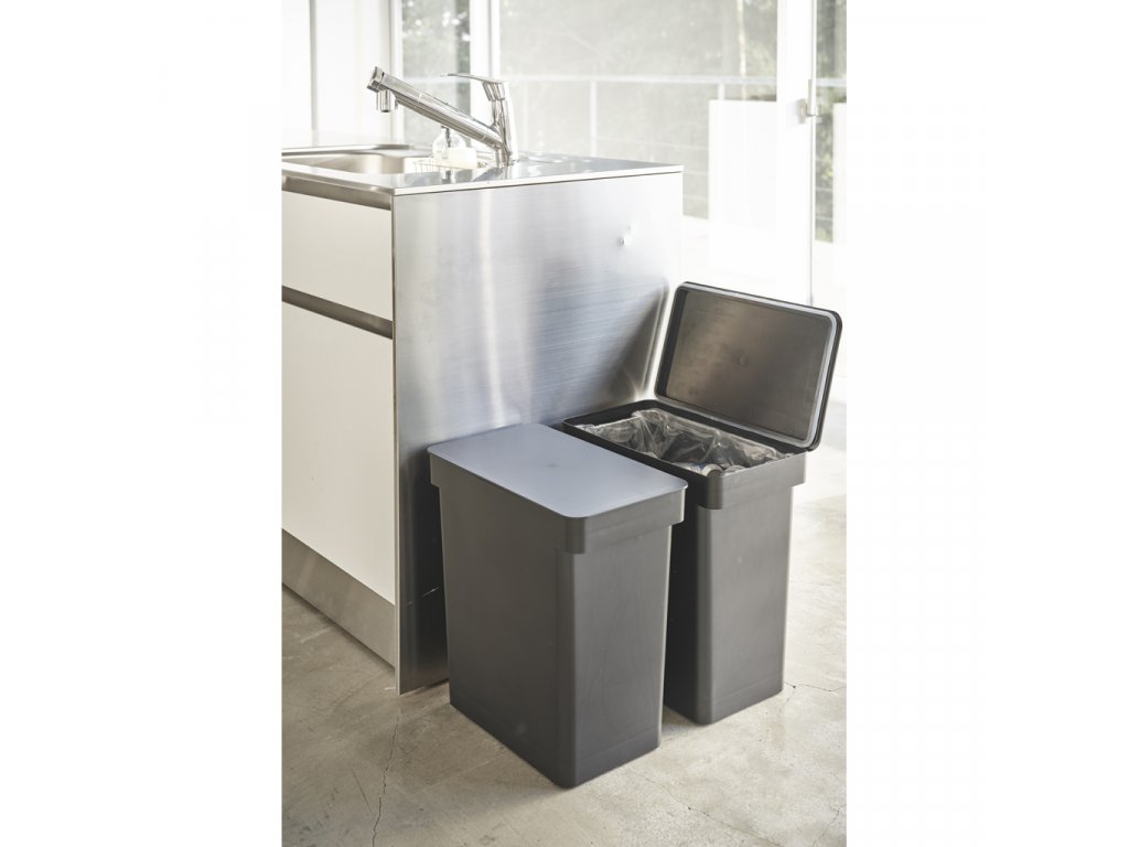 Odpadkový koš YAMAZAKI Tower 5428. Objem 25L, vzduchotěsné víko zabraňující šíření pachů, kolečka pro usnadnění vyjmutí ze skříňky, vnitřní kovový držák sáčků a tašek na odpadky. Velikost: 41 x 24 x v.42,5 cm / v.65,5 cm s otevřeným víkem.