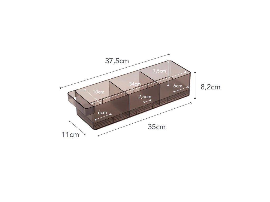 Organizér do lednice Tower 5763 japonské značky YAMAZAKI. Nastavitelné dělící přepážky, rukojeť pro snadnou manipulaci. Materiál: plast - PS RESIN (polystyrenová pryskyřice - termoplastický polymer - vyznačuje se vysokou tvrdostí, pevností a odolností vůči chemickým látkám). Velikost: 8,2 x 11 x 37,5 cm (VxŠxH).