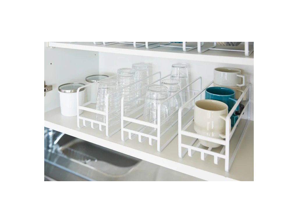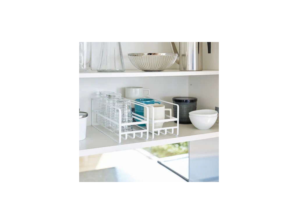 Dobrá organizace prostoru v kuchyňských skříňkách vám zajistí více volného místa. Praktický organizér Tower 5643 japonské značky YAMAZAKI vám umožní ve skříňkách přehledně ukládat všechny sklenice, hrnky a další podobné předměty. Jeho vyjmutí a zpětné zasunutí je snadné díky silikonem potažené rukojeti. S organizérem se snadno dostanete ke sklenicím a hrnkům v zadních řadách vašich skříněk. Už nebudete potřebovat schůdky k tomu, abyste dosáhli na svůj oblíbený hrnek, který se náhodou zatoulal někam do zadního koutku.