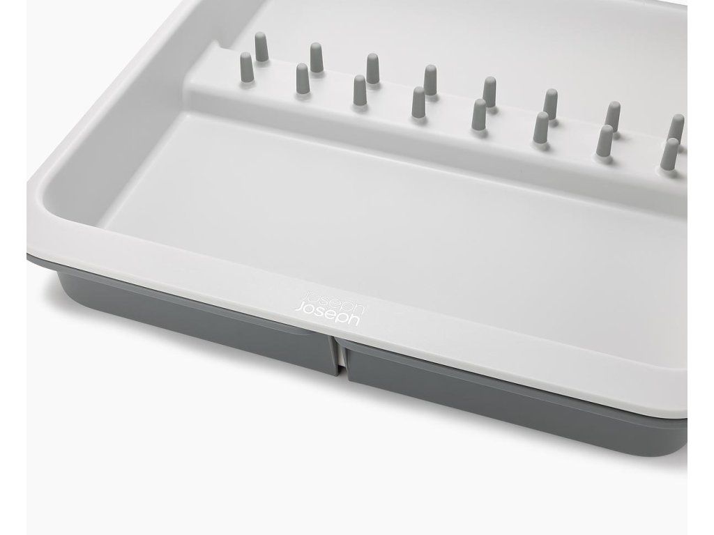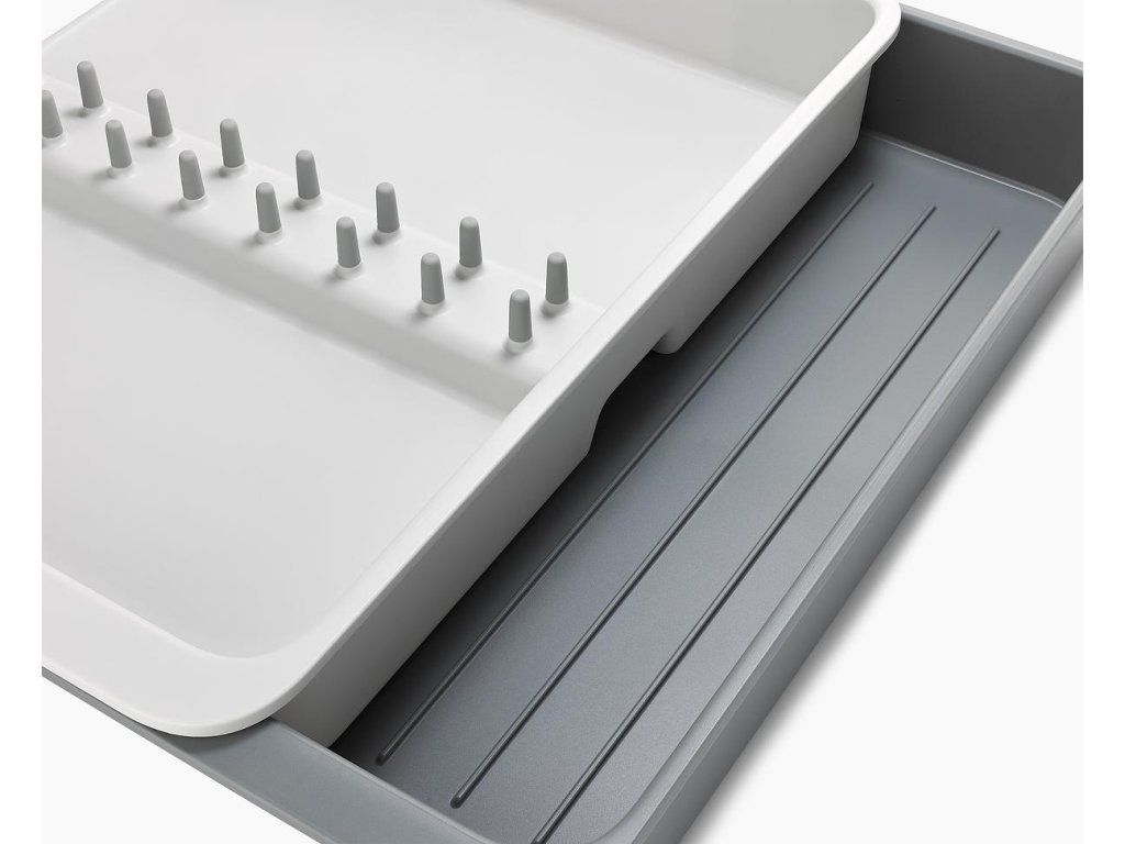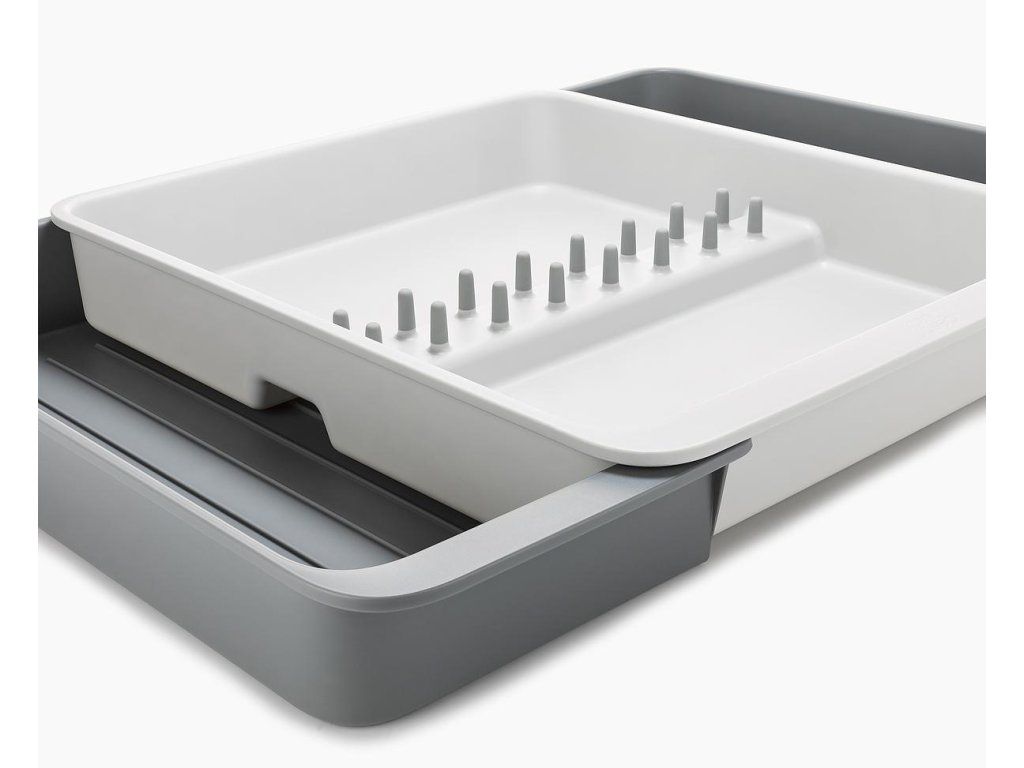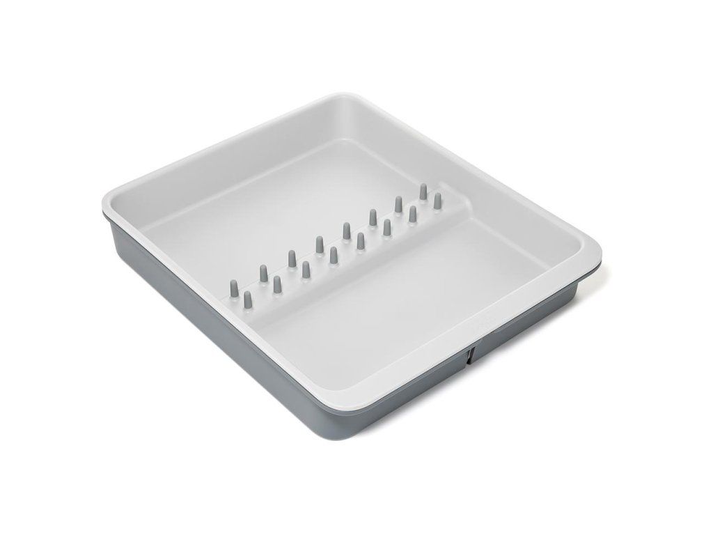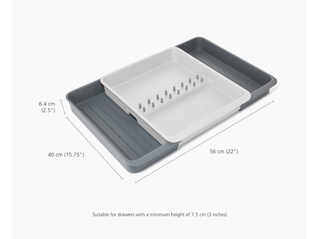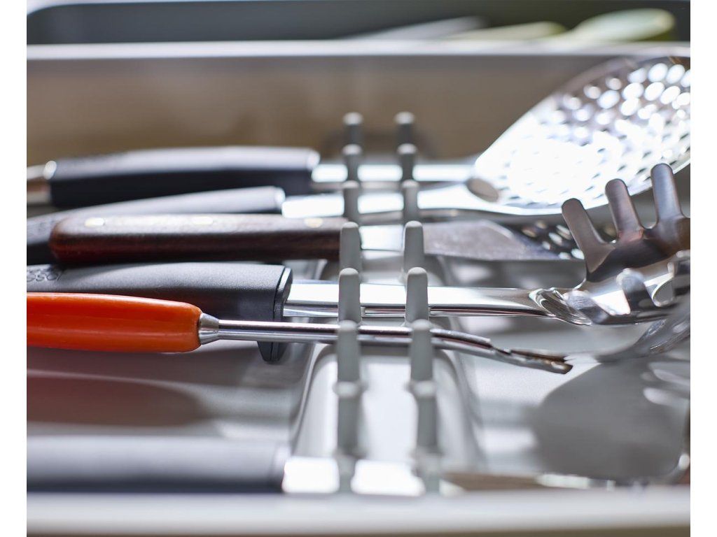 Roztažitelný organizér na kuchyňské náčiní JOSEPH JOSEPH DrawerStore 8500017. Organizér má velkou přihrádku a rozkládací boky k uložení velkých kuchyňských nástrojů i drobného náčiní. Vhodné pro zásuvky s minimální výškou 7,5 cm.